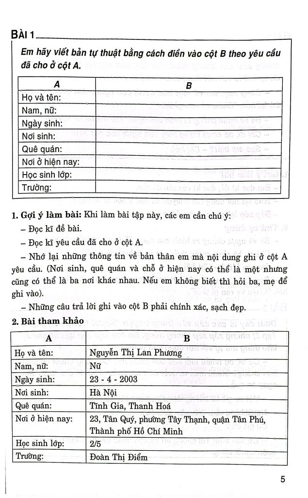 - Đọc kĩ hướng dẫn để biết cách làm bài;