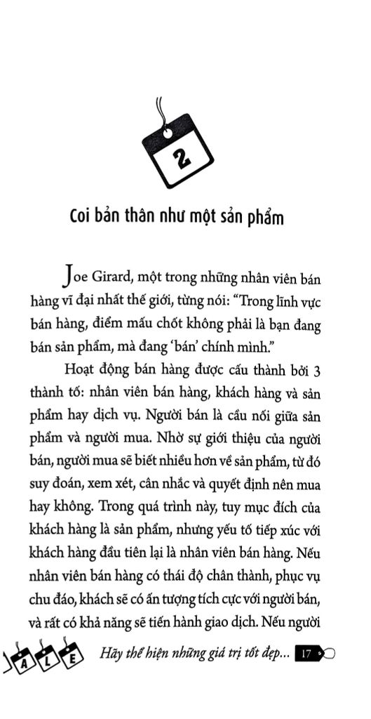 Bán hàng cũng như các ngành nghề khác, hoàn toàn đáng được coi trọng. Nhân viên bán hàng không phải là người lôi kéo hay phục tùng khách hàng, mà là người giúp giải quyết vấn đề. Nên nhớ rằng, chỉ khi bạn tôn trọng chính mình, khách hàng mới tin tưởng bạn.