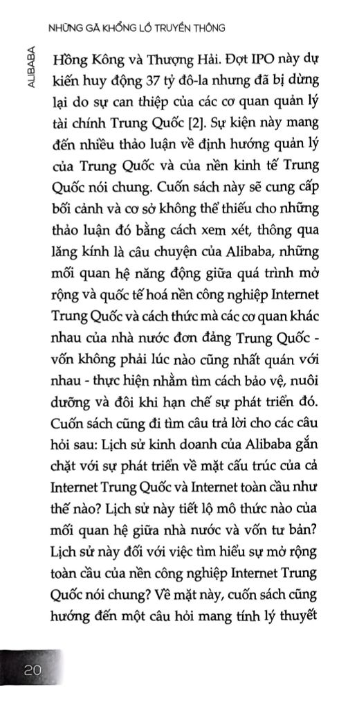 Cuốn sách ALIBABA – Sự tương tác phức tạp giữa nhà nước và vốn tư bản trong bối cảnh Trung Quốc vươn ra toàn cầu cung cấp cái nhìn sâu sắc vào câu chuyện phát triển của Alibaba, một trong những công ty thương mại điện tử và công nghệ hàng đầu Trung Quốc, qua đó phản ánh sự tương tác giữa nhà nước và vốn tư bản trong quá trình hội nhập toàn cầu của nền kinh tế Trung Quốc.