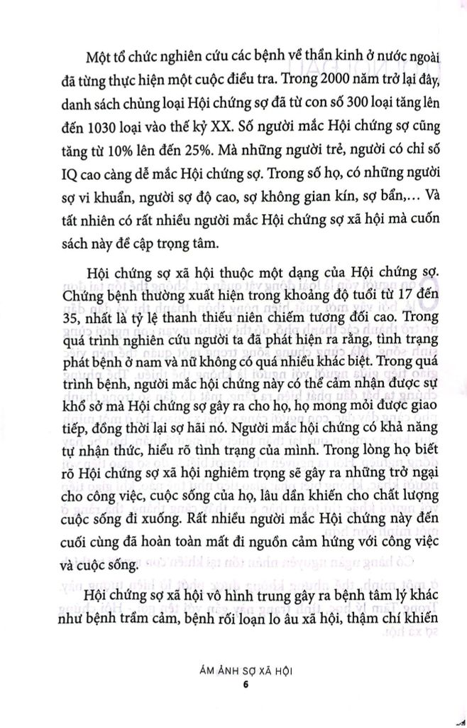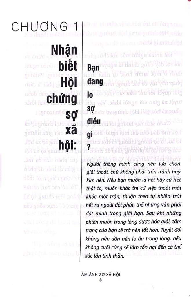 Cuốn sách sẽ mang đến cho bạn những cái nhìn tổng quát, kết hợp lý thuyết với thực tế, phân tích sự khác biệt giữa lo âu, lo sợ thông thường với “Hội chứng sợ”. Hy vọng mọi thắc mắc của bạn có thể được làm sáng tỏ. Từ đó, các bạn có thể sẵn sàng bước ra khỏi bức màn khép kín, thành thạo mọi trường hợp xã giao, để cuộc sống bước lên đỉnh cao huy hoàng!