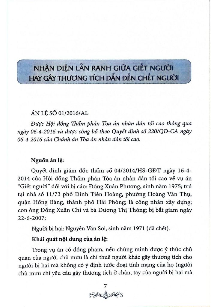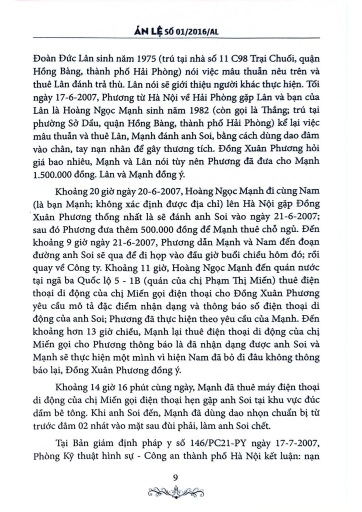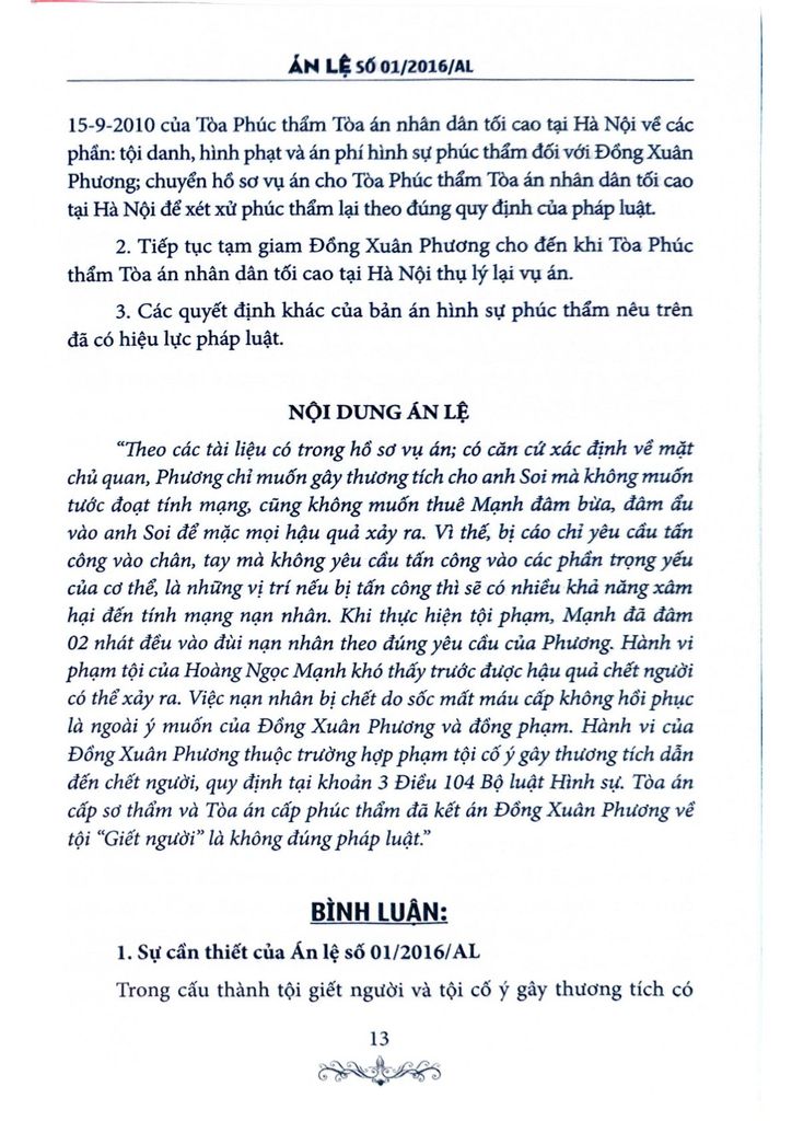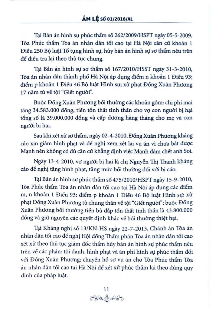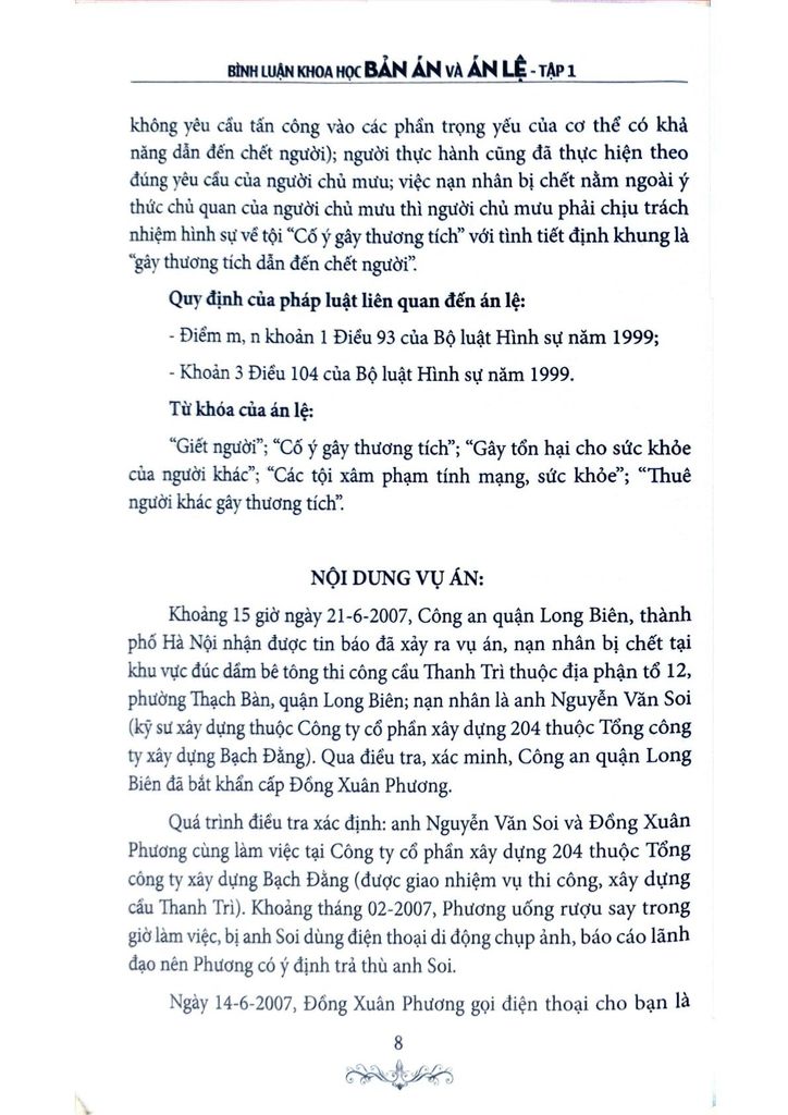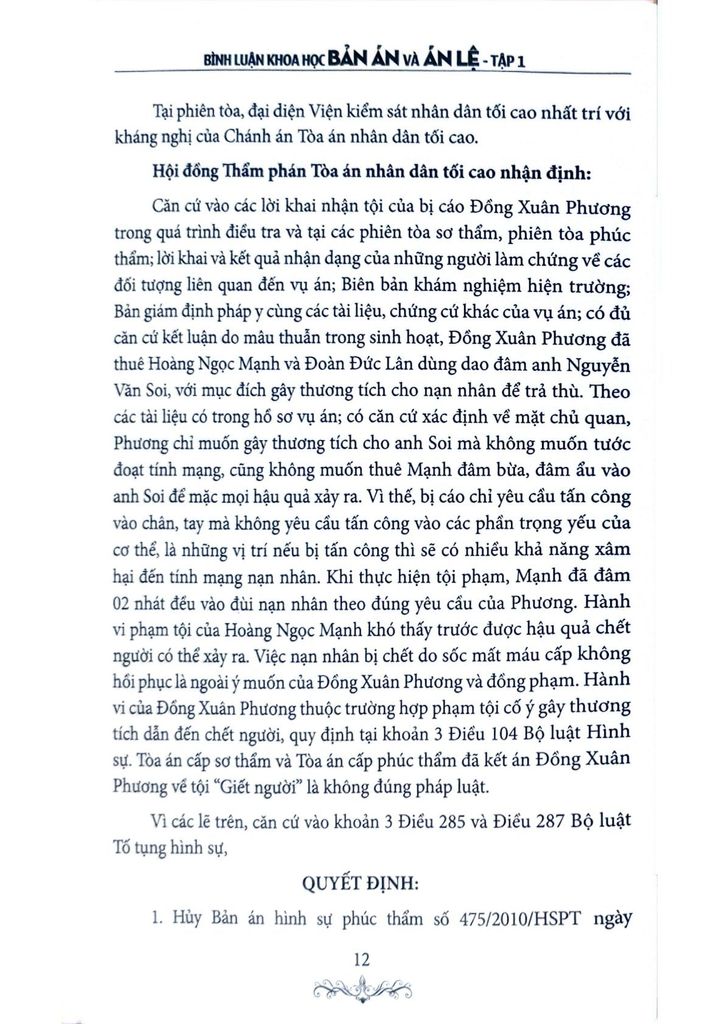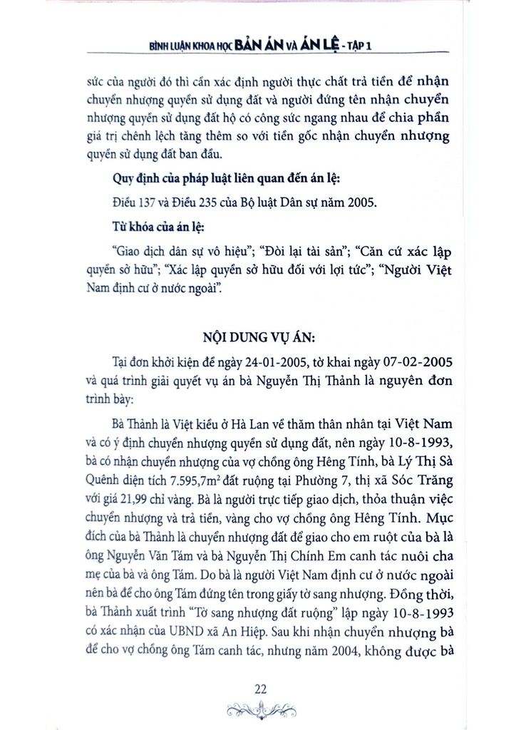 Hy vọng cuốn sách sẽ đáp ứng được phần nào nhu cầu của đông đảo bạn đọc, trước hết là các cán bộ trong các cơ quan tư pháp, các luật sư, các nhà nghiên cứu, các giảng viên, sinh viên luật… trong việc tìm hiểu, nghiên cứu, tham khảo, ứng dụng các án lệ đã được công bố; đồng thời, giúp người dân có thêm vốn kiến thức pháp luật về các tình huống tranh chấp được chọn là án lệ, có thể tự bảo vệ quyền và lợi ích hợp pháp của mình một cách tốt nhất.