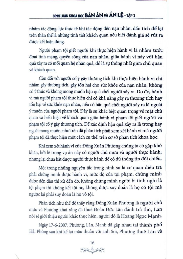 Với mục đích nghiên cứu, tìm hiểu các tình tiết, sự kiện pháp lý trong các bản án, quyết định được lựa chọn là nguồn của án lệ và nội dung các án lệ từ số 01 đến số 18, góp phần vận dụng thống nhất pháp luật trong thực tiễn xét xử về những vấn đề còn có những cách hiểu, áp dụng pháp luật khác nhau, đồng thời tác giả cũng giới thiệu các án lệ từ số 19 đến số 37 và một số án lệ nước ngoài theo hình thức song ngữ Việt – Anh để người đọc có thêm nguồn tài liệu nghiên cứu, Nhà xuất bản Tư pháp xuất bản cuốn Bình luận khoa học bản án và án lệ – Tập 1 của Trọng tài viên Trung tâm Trọng tài quốc tế Việt Nam (VIAC) Tưởng Duy Lượng – nguyên Phó Chánh án Tòa án nhân dân tối cao, người có bề dày trong công tác nghiên cứu khoa học pháp lý, với vốn kiến thức chuyên sâu về lý luận trong lĩnh vực áp dụng pháp luật nói chung và có nhiều năm xét xử giám đốc thẩm, tái thẩm các vụ án dân sự – kinh tế.