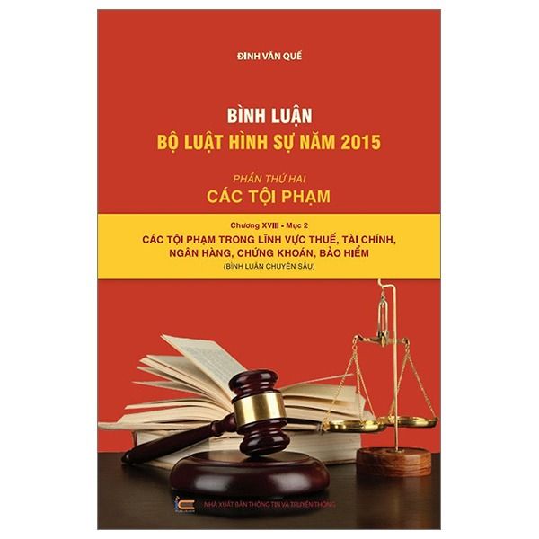 Tiếp theo các cuốn “Bình luận Bộ luật Hình sự năm 2015…”, tác giả Đinh Văn Quế – Thạc sỹ Luật học, nguyên Thành viên Hội đồng Thẩm phán, Chánh Tòa hình sự Tòa án nhân dân tối cao phối hợp với Nhà xuất bản Thông tin và Truyền thông tiếp tục cho ra mắt bạn đọc cuốn “Bình luận Bộ luật Hình sự năm 2015 (Phần thứ hai – Các tội phạm), Chương XVIII, Mục 2: Các tội phạm trong lĩnh vực thuế, tài chính, ngân hàng, chứng khoán, bảo hiểm”.