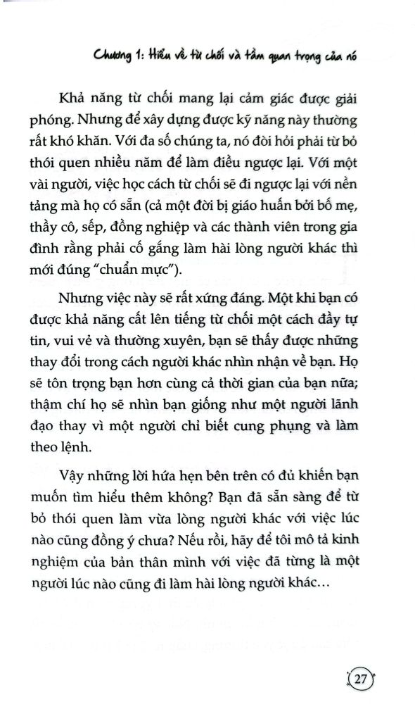 Warren Buffett từng nói: "Người rất thành công là người biết nói 'không' với hầu hết mọi thứ." Tuy nhiên, từ chối không đồng nghĩa với làm mất lòng người khác. Cuốn sách này sẽ giúp bạn: