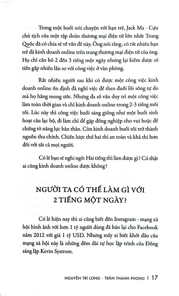 Bạn hoàn toàn có thể chỉ dành 2 tiếng / ngày cho khởi nghiệp kinh doanh online. Và tất nhiên là không nghỉ việc chính. Đã có nhiều tấm gương thực hành thành công. Chương đầu tiên nói về họ.