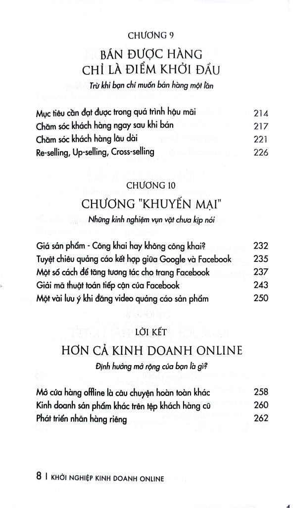 Trong chương cuối cùng, tác giả Nguyễn Trí Long chia sẻ vài mẹo nhỏ trong bán hàng online. Đồng thời cũng có nhiều định hướng tiếp theo cho con đường này. Bạn có thể tham khảo thêm hoặc suy nghĩ nghiêm túc về nó.