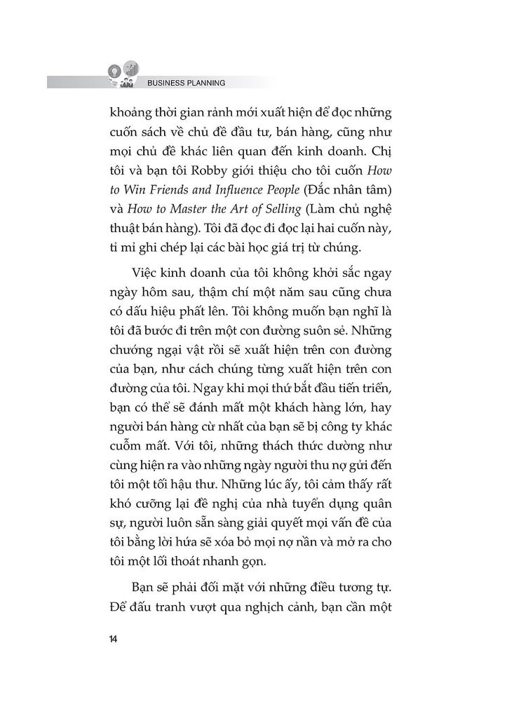 Cuốn Business Planning là một cuốn sách hướng dẫn toàn diện giúp bạn đi từ ý tưởng đến hành động và cuối cùng là thành công. Nó không chỉ giúp bạn xây dựng một kế hoạch kinh doanh chi tiết, mà còn cung cấp cho bạn công cụ để biến mọi mục tiêu trở nên khả thi và bền vững.