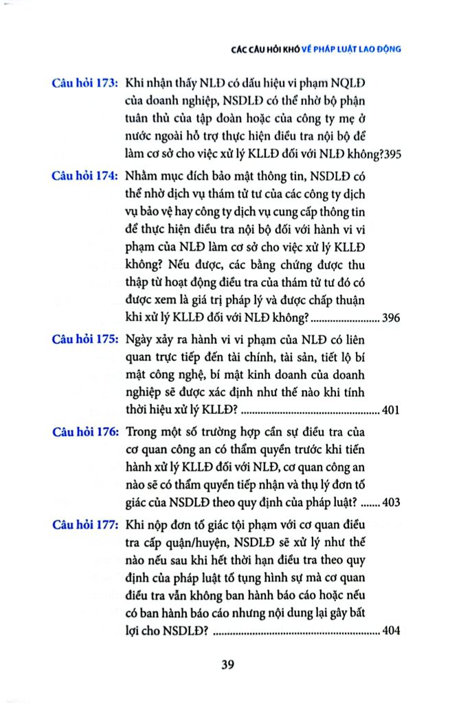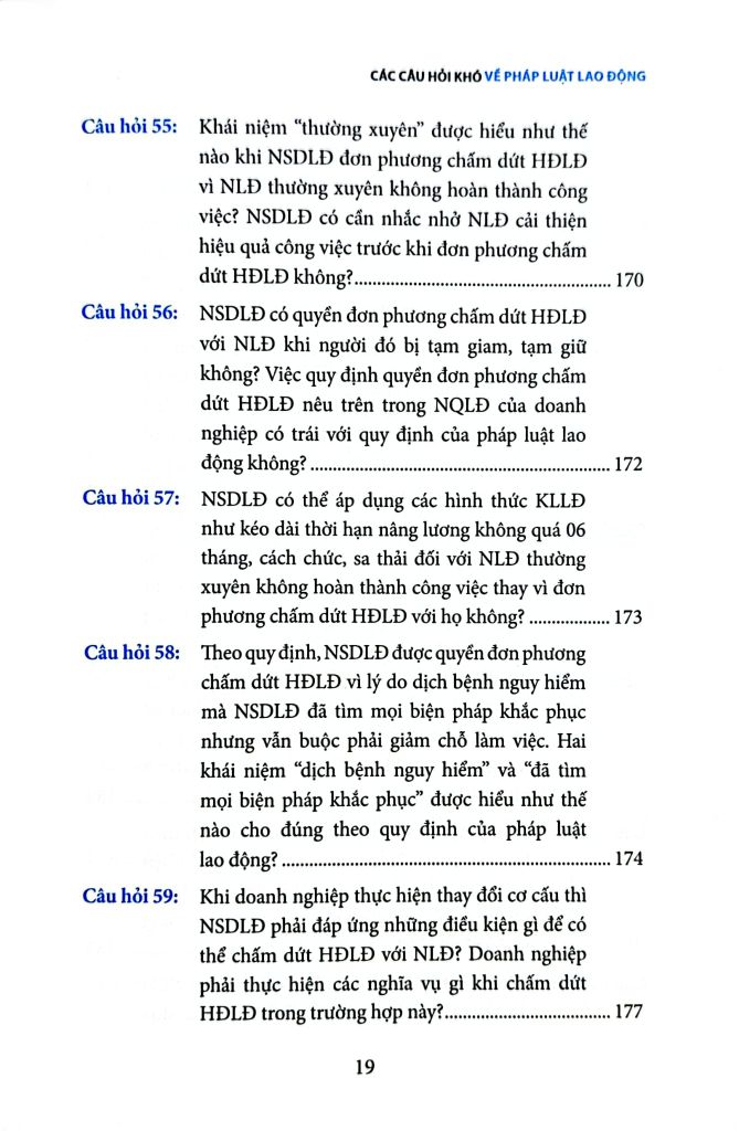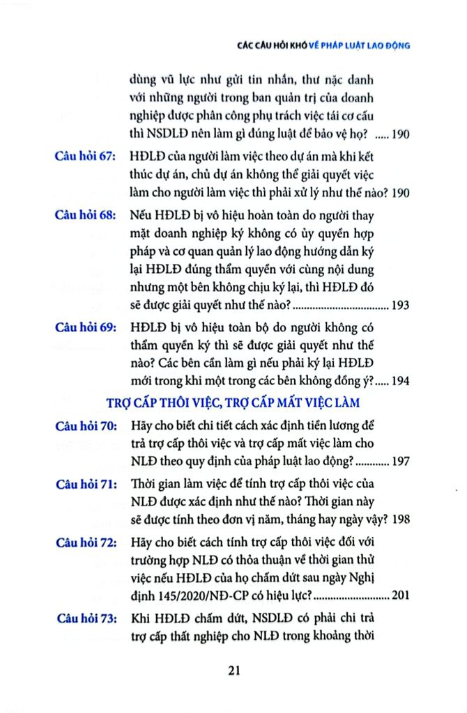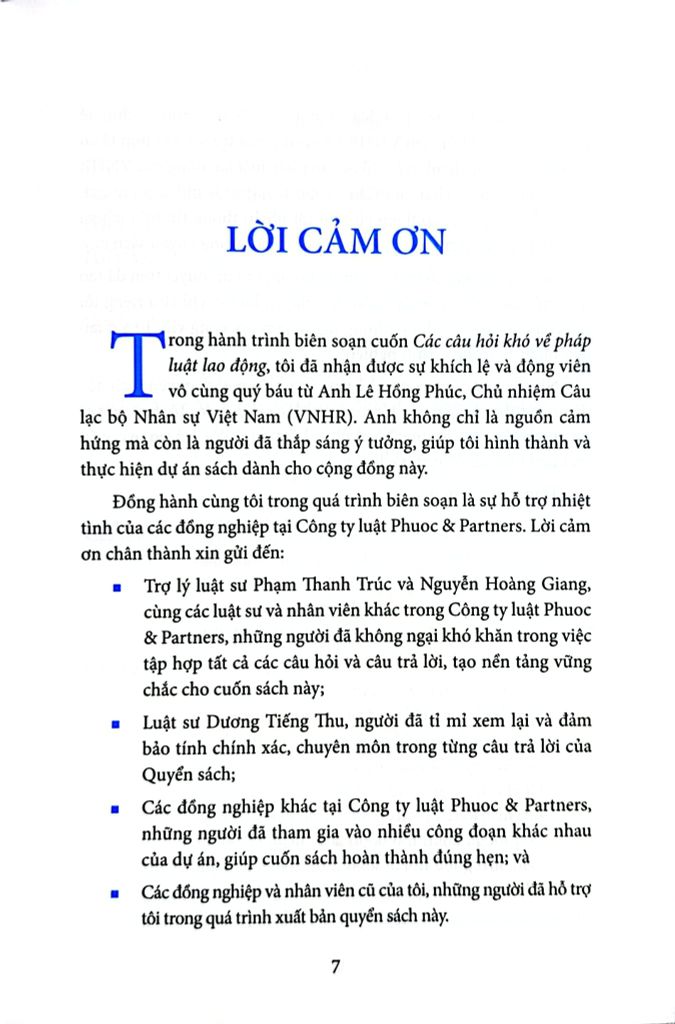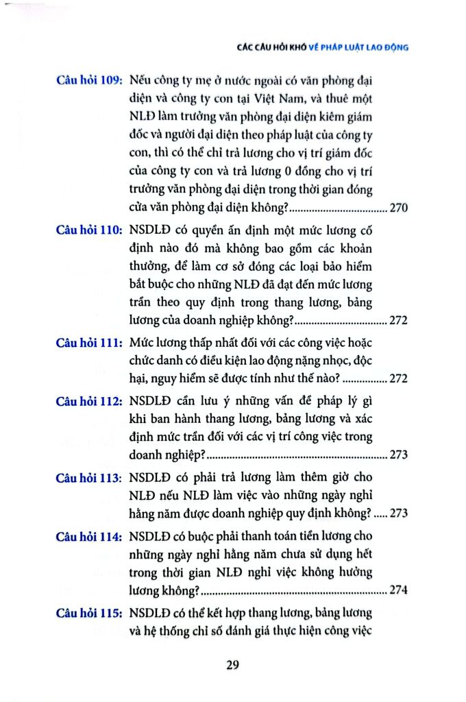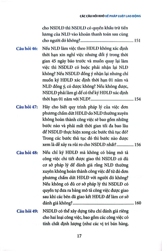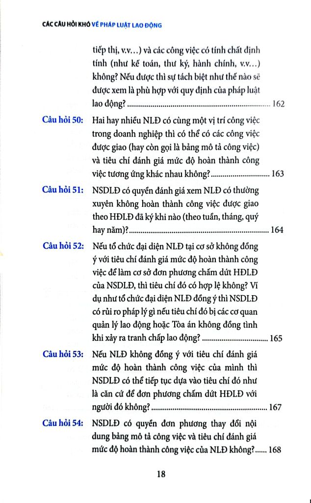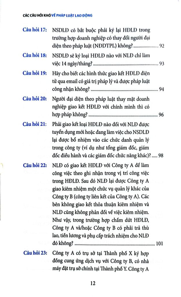 Cuốn sách Các câu hỏi khó về pháp luật lao động là một quyển sách không thể thiếu dành cho những người hành nghề luật nói chung và những người làm công tác nhân sự trong doanh nghiệp nói riêng, quyển sách tập hợp những câu hỏi khó, thường không dễ tìm thấy câu trả lời chính xác và rõ ràng trong các văn bản pháp luật, đòi hỏi sự tham khảo và phân tích tinh tế từ nhiều nguồn khác nhau. Đối với những câu hỏi quá phức tạp, tác giả đã dựa vào kinh nghiệm thực tế của mình cùng với các hướng dẫn không chính thức từ các chuyên viên quản lý lao động ở các cấp Trung ương và địa phương để soạn ra các câu trả lời phù hợp nhất tại từng thời điểm