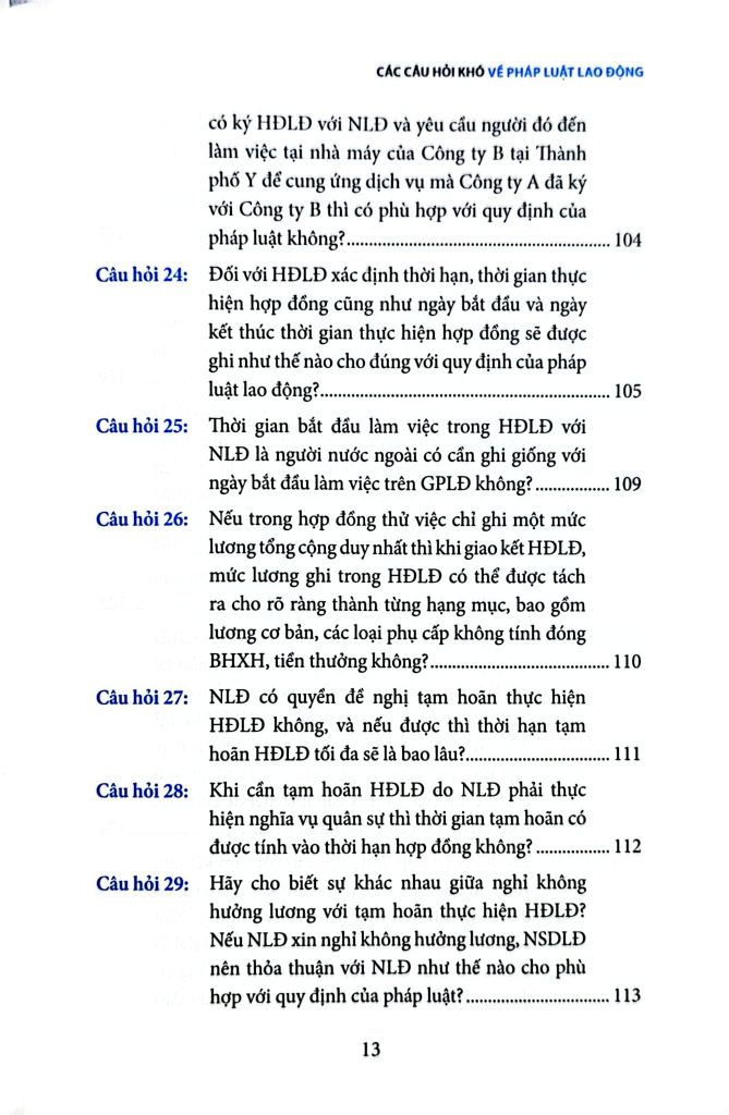 Cuốn sách được biên soạn dựa trên nguyên tắc sau Quy định của pháp luật + Lý luận - Thực tiễn - Tình hình thực tế tại doanh nghiệp, xuất phát từ góc nhìn chủ yếu từ các quy định mới nhất của pháp luật lao động Việt Nam và thực tiễn áp dụng tại doanh nghiệp nhằm giúp các doanh nghiệp vừa tuân thủ pháp luật lao động, lại vừa đáp ứng được yêu cấu của các cơ quan quản lý lao động địa phương.