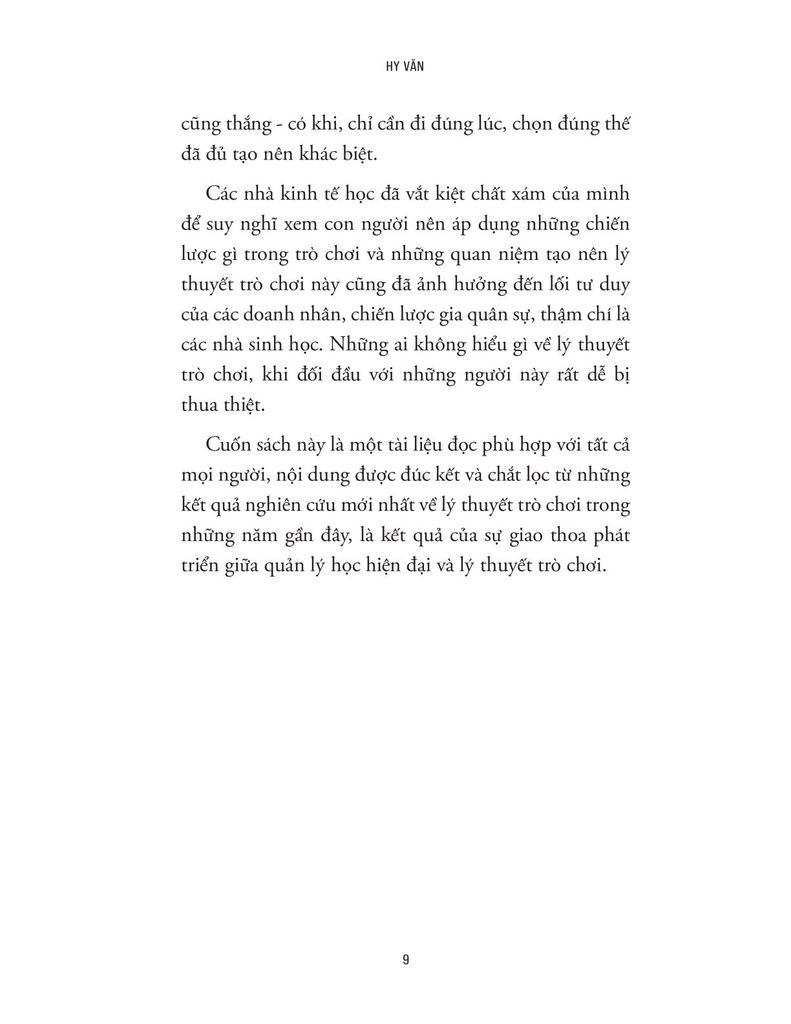 Điểm giá trị của cuốn sách nằm ở việc giúp người đọc thay đổi cách suy nghĩ. Thay vì nhìn cuộc sống theo lối tư duy tuyến tính - cứ cố gắng nhiều là sẽ thành công - tác giả chỉ ra rằng đôi khi chiến thắng phụ thuộc vào việc hiểu cách người khác suy nghĩ, dự đoán hành động của họ và chọn chiến lược phù hợp. Chính vì vậy, những người thành công thường không chỉ chăm chỉ, mà còn rất giỏi quan sát, phân tích và điều chỉnh cách hành động của mình.