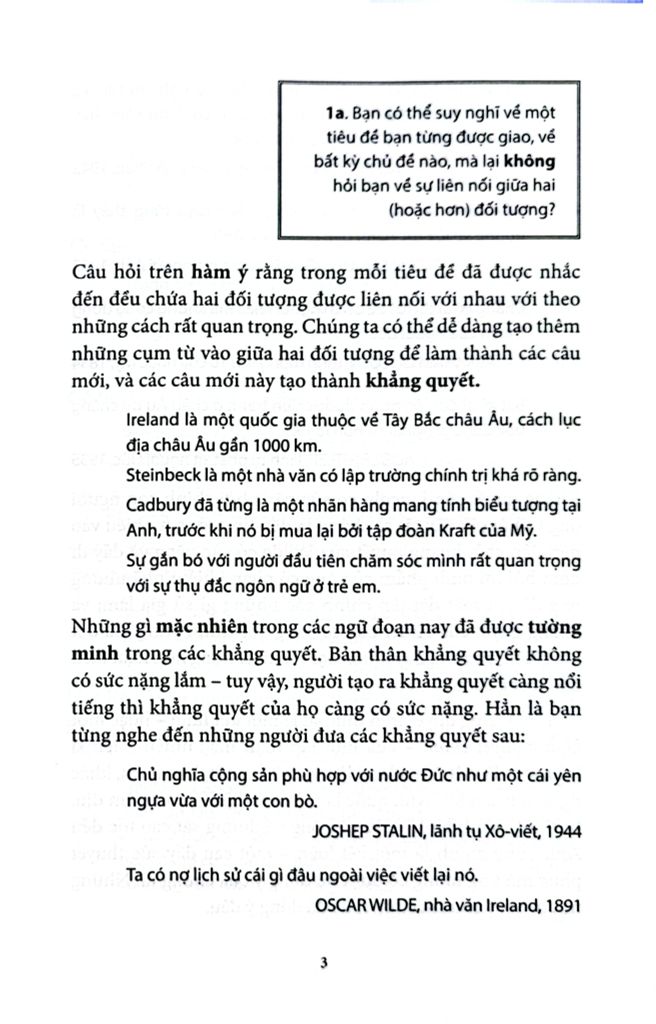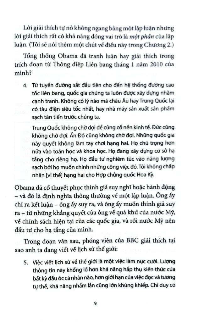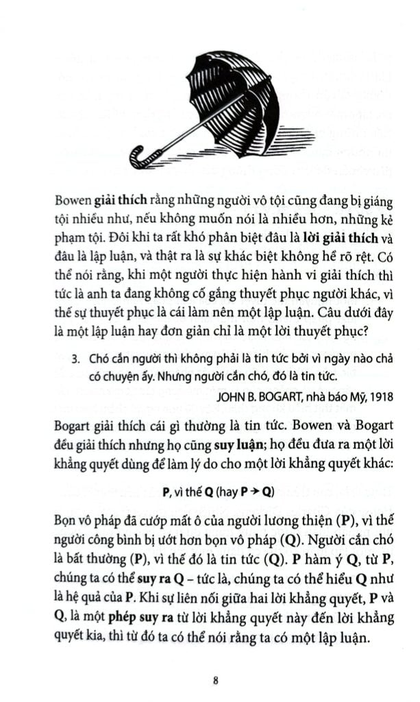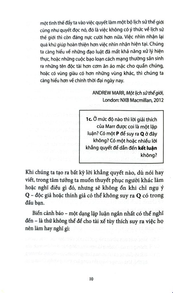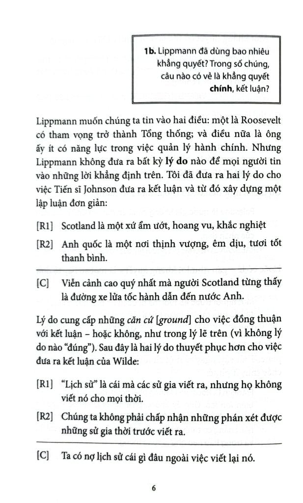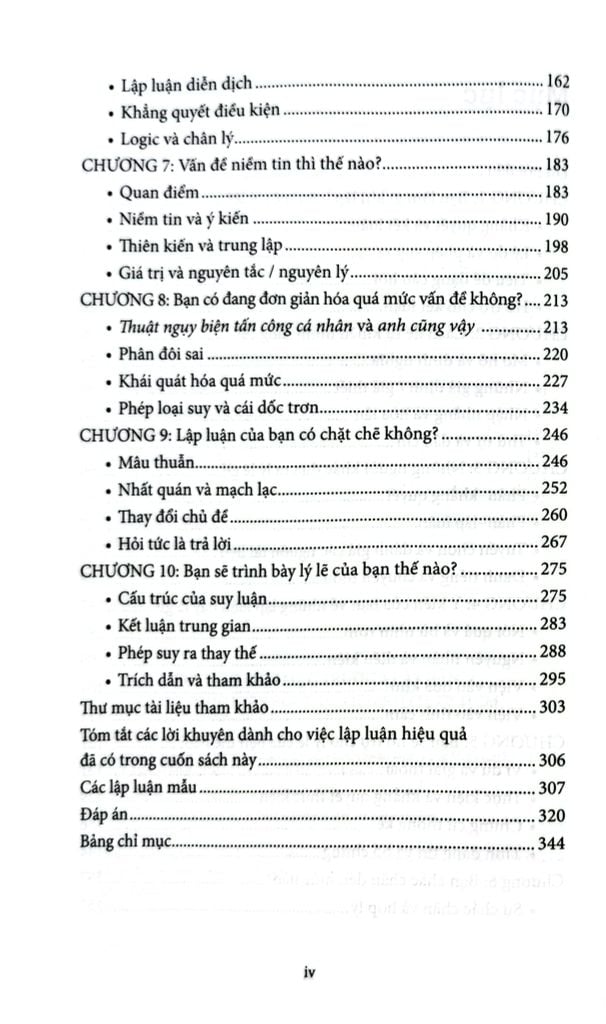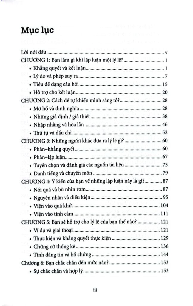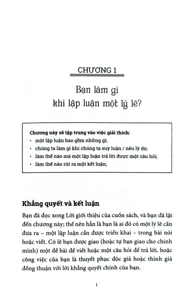 Quyển sách dễ tiếp cận này đưa bạn từng bước bước vào nghệ thuật lập luận, từ suy tư về viết cái gì và viết làm sao, cho đến làm cách nào có thể củng cố các khẳng quyết của bạn, và làm sao đi đến một kết luận vững chắc. Được viết một cách hấp dẫn cùng với các tóm tắt đặc biệt hữu ích ở cuối mỗi chương, quyển sách này cho ta lời khuyên dễ dàng thực hiện theo khi đánh giá lập luận của những người khác và trình bày những lập luân hiệu quả của chính bạn. Điểm mạnh của quyển sách này nằm ở hướng dẫn dễ hiểu và sử dụng các lập luận có thực trong đời - vừa đương đại vừa trong lịch sử - và những câu hỏi có thực trong tiểu luận từ đủ các ngành khoa học xã hội và nhân văn. Những ví dụ hấp dẫn, có liên quan, và thường vui vẻ, được sử dụng không phải để minh hoạ, nhưng để đưa ra các điểm tinh tuý ta có thể học, kỹ thuật nào có thể vay mượn và những cạm bẫy cần tránh trong lĩnh vực tư duy phân tích và viết lách.