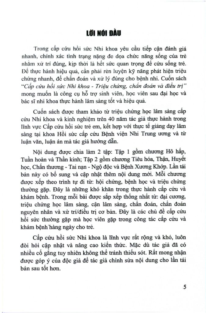 Cuốn sách được tham khảo từ triệu chứng học lâm sàng cấp cứu Nhi khoa và kinh nghiệm trên 40 năm tác giả thực hành trong lĩnh vực Cấp cứu hồi sức trẻ em, kết hợp với thực tế giảng dạy lâm sàng tại khoa Hồi sức cấp cứu Bệnh viện Nhi Trung ương và từ luận văn, luận án mà tác giả hướng dẫn.