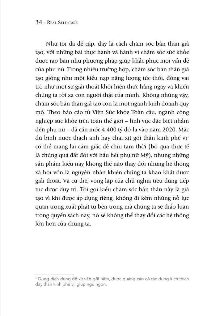 Ngày nay, khi nói đến “chăm sóc bản thân”, nhiều người nghĩ ngay đến những buổi spa thư giãn, khóa học yoga hay những phương pháp chăm sóc da, dưỡng tóc đắt tiền. Nhưng tất cả những điều đó có thật sự giúp chúng ta đạt được sự cân bằng và hạnh phúc không, hay chúng đơn thuần là những hình thức giải tỏa tạm thời để che đậy sự mệt mỏi và áp lực đang chồng chất? Đó chính là câu hỏi mà bác sĩ tâm thần chuyên về sức khỏe tinh thần phụ nữ Pooja Lakshmin đặt ra trong “Chăm sóc bản thân thật sự” (tựa gốc: Real self-care), một quyển sách đáng đọc trong thời đại phát triển bùng nổ của lĩnh vực chăm sóc sức khỏe thể chất và tinh thần.