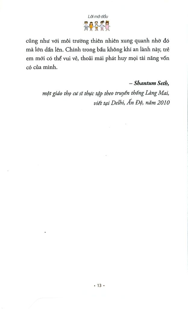 Tôi đến Làng Mai lần đầu tiên vào năm 1989 và từ đó đến nay tôi vẫn thường xuyên đến Làng tu học. Mùa hè nào, Thiền sư Nhất Hạnh cũng tổ chức khóa tu cho các gia đình. Trong những khóa tu này, thiền sinh – đủ các độ tuổi – cùng nhau thực tập trở về với chính mình để ý thức rõ mình là ai, mình đang làm gì, nói gì, đang có những cảm xúc hay suy nghĩ gì, ý thức về những gì đang diễn ra bên trong và xung quanh mình. Cuốn sách này chính là hoa trái tu học của tứ chúng Làng Mai, được hình thành dựa trên kinh nghiệm thực tập cùng với trẻ em trong mấy chục năm qua.