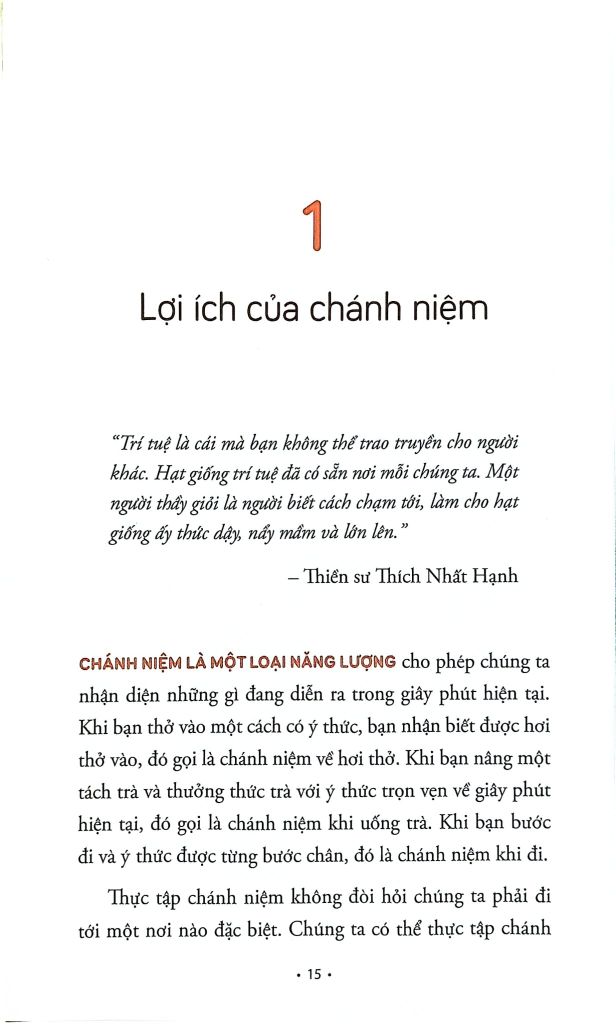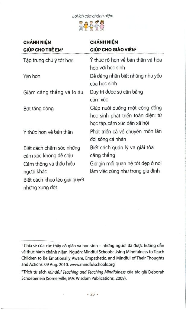 Thực tế là hệ thống giáo dục của chúng ta thường đặt trọng tâm vào thành tích thi cử mà chưa chú trọng đầy đủ đến việc dạy cho các em cách chăm sóc những cảm xúc của mình, cũng như các phép ứng xử cần thiết khi giao tiếp với xã hội. Lẽ tất nhiên là trường học cần trang bị cho các em những kỹ năng và kiến thức cần thiết, nhưng việc giúp các em có thêm sức mạnh và sự vững chãi khi đối diện với những cơn bão cảm xúc, cũng như khả năng chấp nhận và bao dung trước những khác biệt trong nhận thức, lối sống của con người trong xã hội cũng quan trọng không kém. Sự thực tập chánh niệm có công năng rất lớn trong việc giúp các em phát triển những kỹ năng chế tác và nuôi lớn bình an trong tự thân, góp phần vào sự bình an của môi trường xung quanh mình.