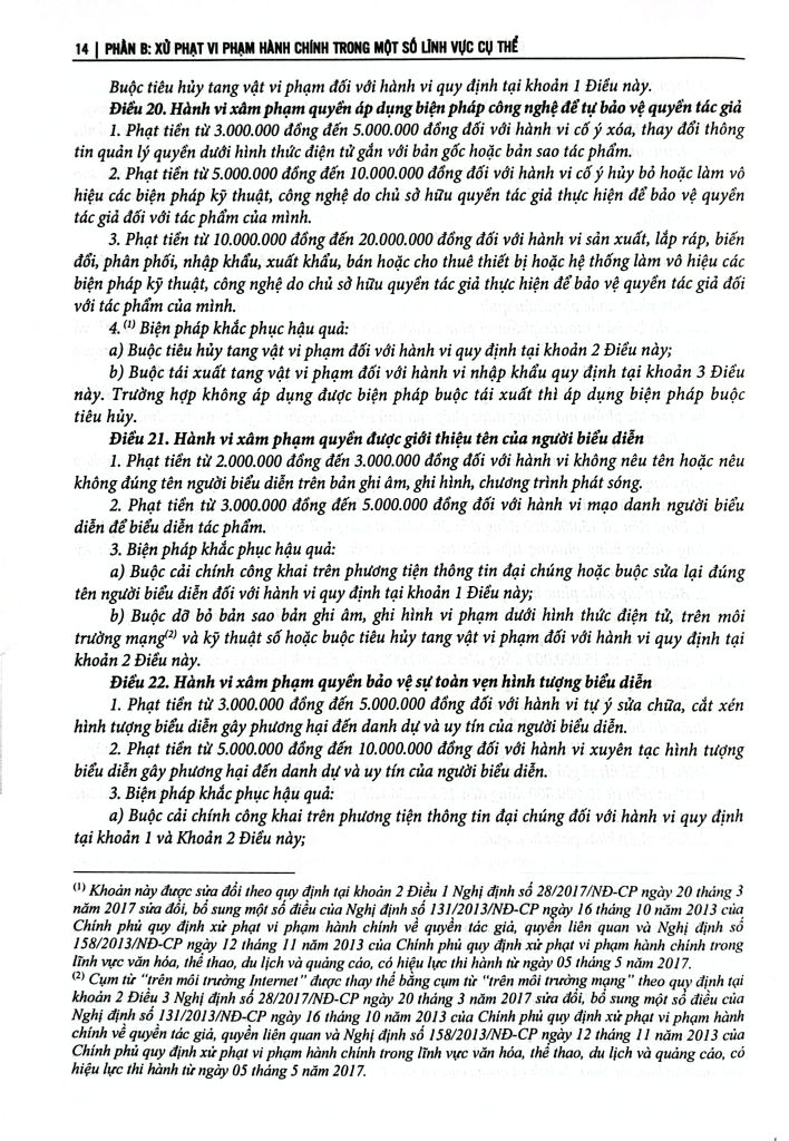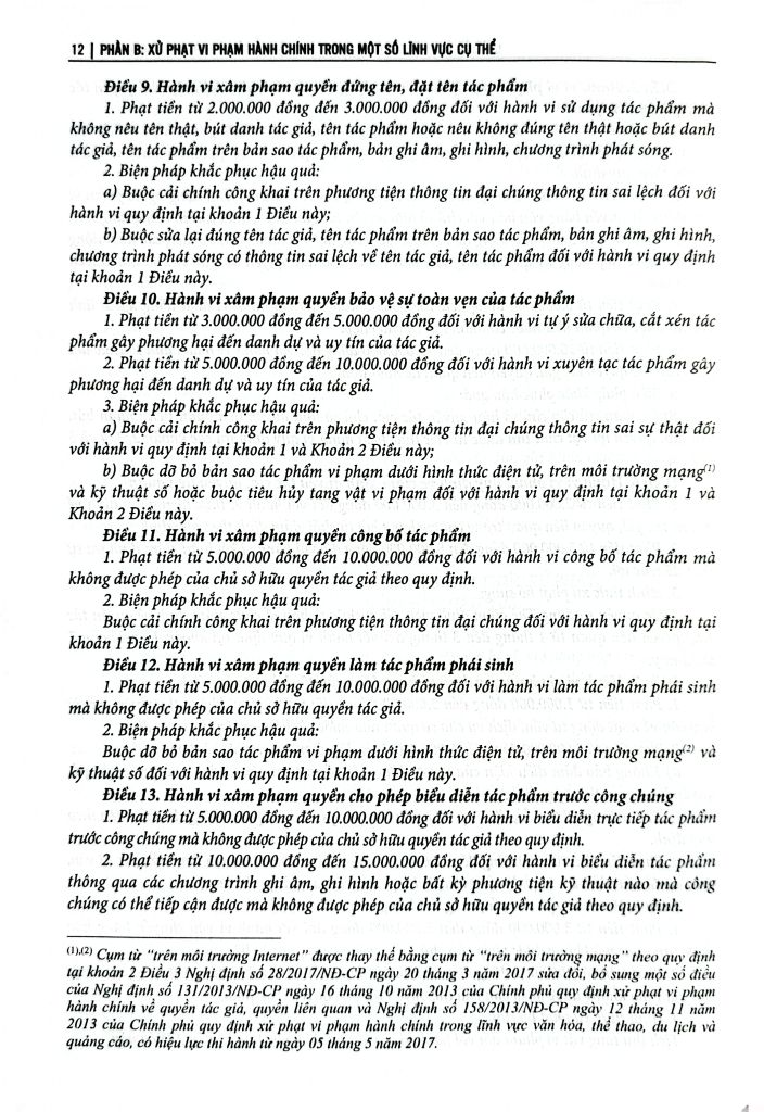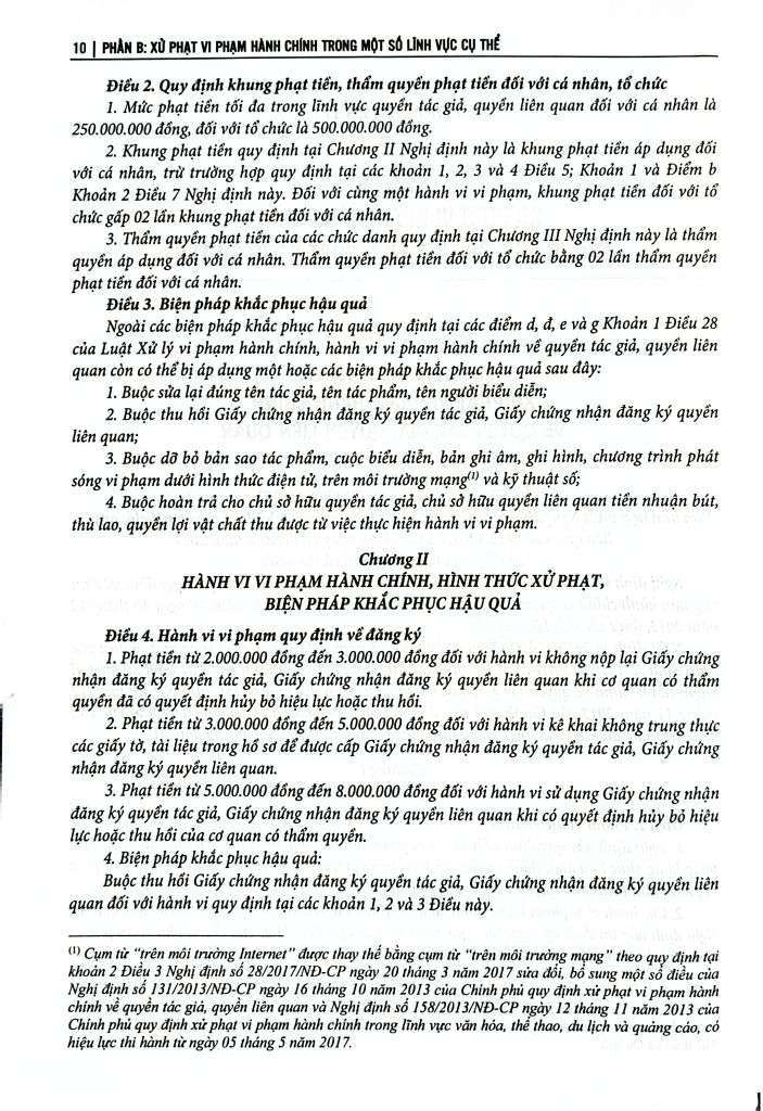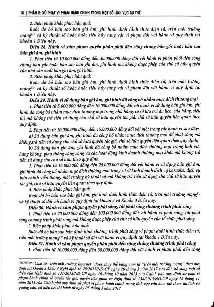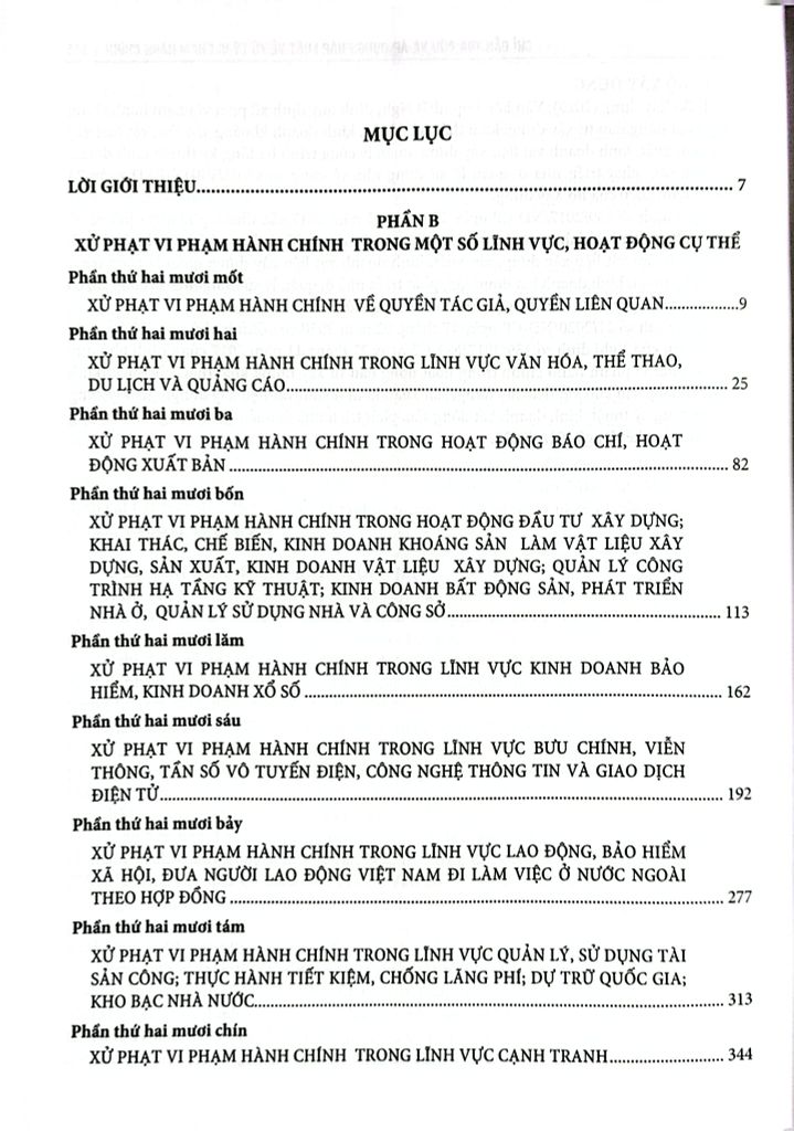 Phần B: Xử phạt vi phạm hành chính trong một số lĩnh vực, hoạt động cụ thể Bộ sách tập hợp các văn bản mới nhất giúp độc giả dễ dàng tra cứu và áp dụng pháp luật xử lý vi phạm hành chính trong xây dựng pháp luật, tổ chức thi hành pháp luật, thực hiện pháp luật và nhất là trong quá trình áp dụng pháp luật.