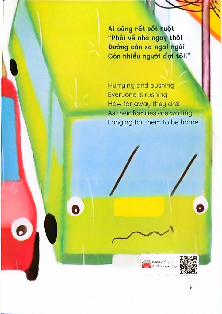 Đặc biệt, là phần audiobook với giọng đọc của bé Quỳnh An, 9 tuổi và tác giả - cô Mai Thị Việt Thắng được tích hợp thông qua QR Code mà chúng tôi đặt ở cuối mỗi trang sách. Bố mẹ có thể sử dụng tính năng quét mã QR có sẵn trong bất kỳ ứng dụng Facebooks, Zalo, Viber,… quét QR code trong sách và lắng nghe giọng đọc tiếng Anh vô cùng hồn nhiên, tinh nghịch của bé An, cùng với đó là giọng đọc tiếng Việt cũng không kém phần dễ thương, dễ “ghiền” của cô tác giả Mai Thị Việt Thắng.