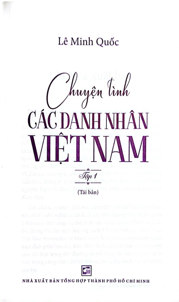 “Chuyện tình các danh nhân Việt Nam” (2 tập - NXB Tổng hợp TP HCM) của nhà báo Lê Minh Quốc là một quyển sách thú vị.