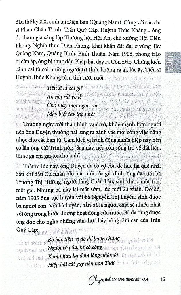 “Chuyện tình các danh nhân Việt Nam” (2 tập - NXB Tổng hợp TP HCM) của nhà báo Lê Minh Quốc là một quyển sách thú vị.