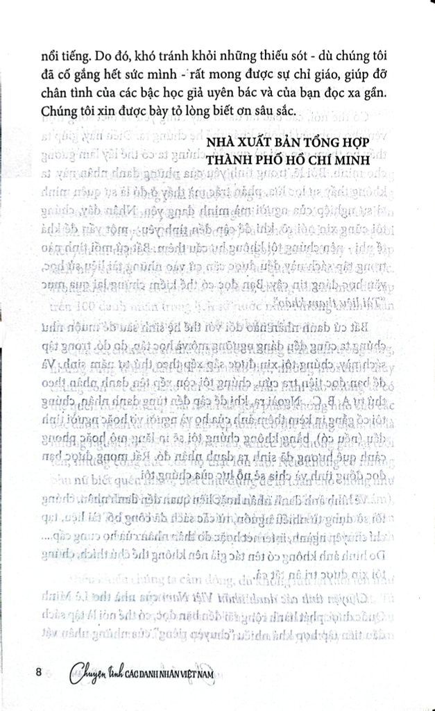 Nhân đây cũng xin nói rõ nội hàm của từ “danh nhân” trong tập sách này, Đại từ điển tiếng Việt (Nhà xuất bản Văn hóa Thông tin, 1998, trang 510) định nghĩa là “người có danh tiếng”. Không những thế, những “người có danh tiếng” ấy với tài năng, công đức, tài hoa… đã có những đóng góp tích cực trong lãnh vực chuyên môn của họ.