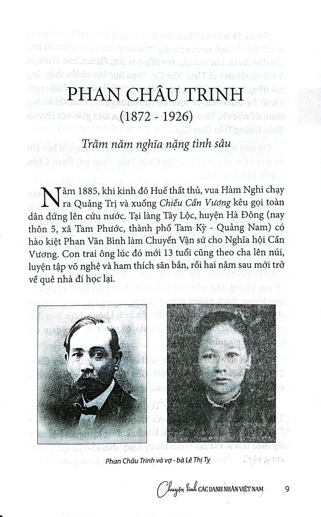 Đọc tập sách này, chúng ta có thể thấy được những tình cảm trong sáng, những rung động đầu đời rất mãnh liệt; những mối tình thủy chung son sắt đáng cho đời sau nhớ mãi. Làm sao chúng ta có thể quên được những giai nhân đã góp phần không nhỏ các bậc danh nhân làm nên sự nghiệp lớn? Có thể khẳng định họ là những người lặng lẽ đứng phía sau, nhiều lúc không ghi lại tuổi tên nhưng công đức của họ thật lớn lao. Nếu không có những phụ nữ biết quên mình, biết chịu đựng để lo toan cho chồng như bà Dương Như Ngọc (vợ Ngô Quyền), bà Ba Cẩn (vợ Đề Thám), bà Lê Thị Tỵ (vợ Phan Châu Trinh), bà Lê Thị Lễ (vợ Lương Văn Can)…, liệu các danh nhân này có để lại sự nghiệp hiển hách như ngày nay?