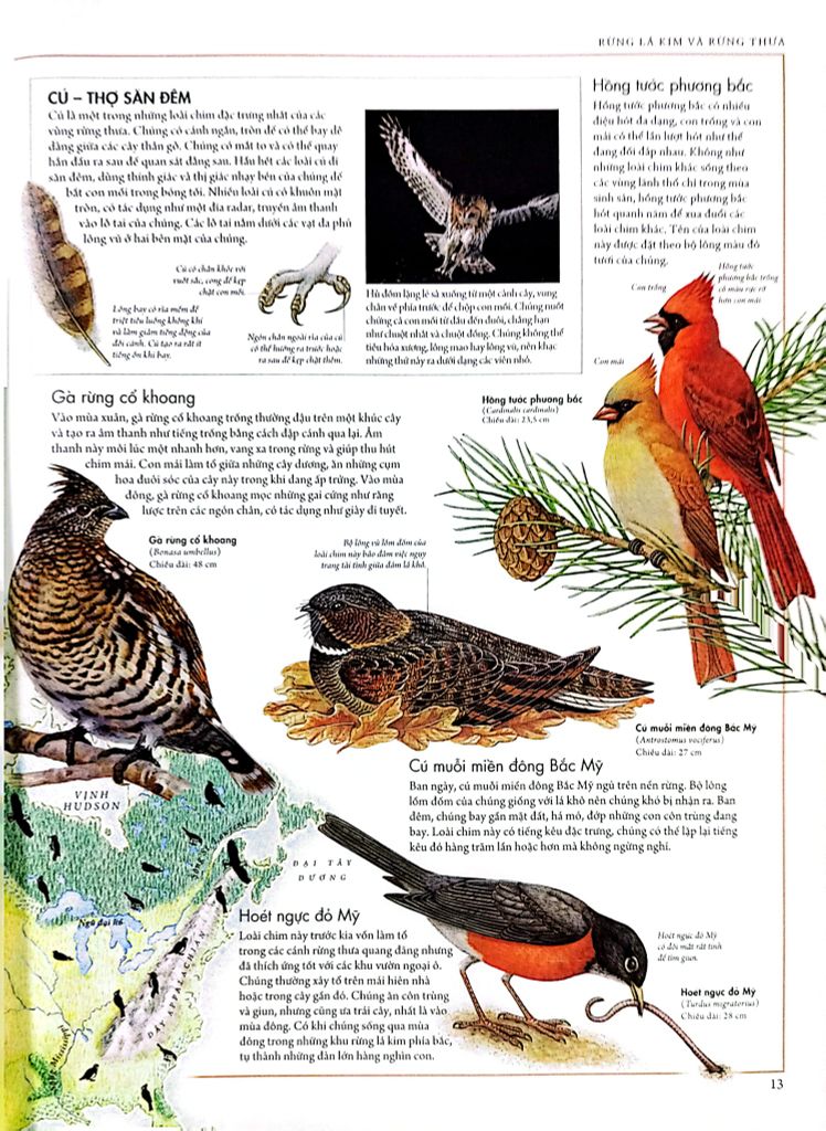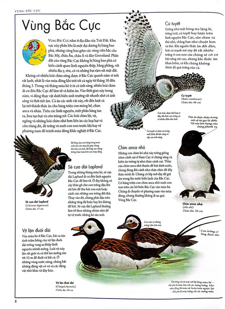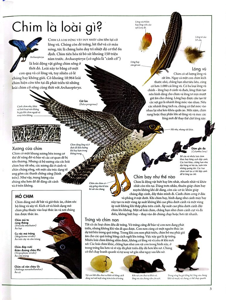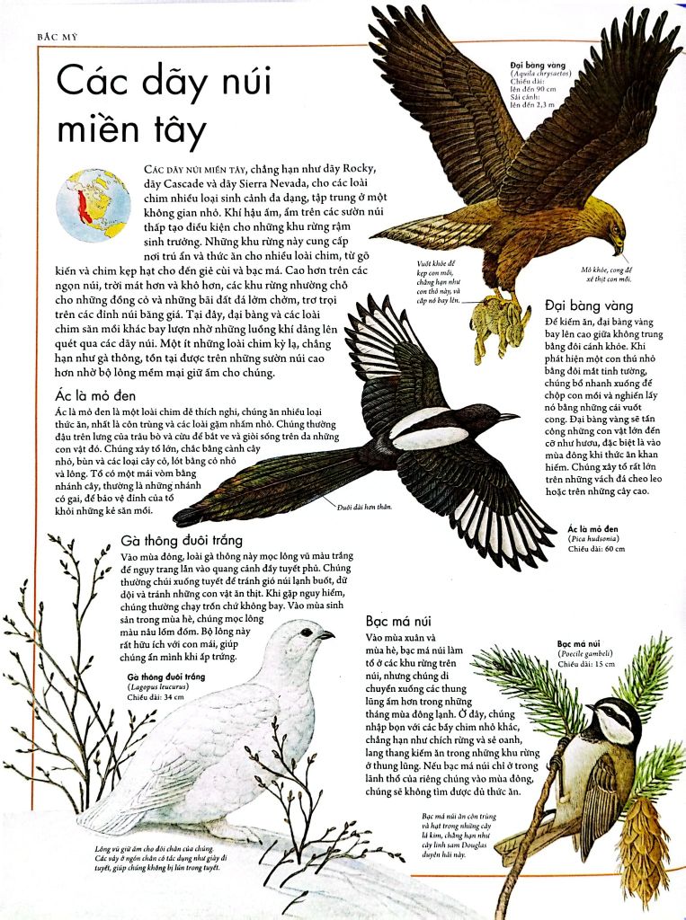 Atlas các loài chim - Bách khoa bằng hình về các loài chim trên thế giới mang đến một góc nhìn đẹp và đắm say về thế giới các loài chim với hàng loạt hình ảnh minh họa xuất sắc cùng nhiều bản đồ chi tiết và nguồn thông tin dồi dào cuốn cuốn. Với cuốn sách này, các bạn đọc nhỏ sẽ tìm hiểu vì sao hồng hạc có màu hồng, chim nào có thể chạy nước rút nhanh hơn ngựa, tại sao chim điên có tên như thế hay vì sao đại bàng bạc nhào lộn trên không… Các em sẽ biết được tại sao chim di cư và các loài bay xa nhất, chim nào bắt cá bằng chân, vì sao rất đe dọa và có làm gì để bảo vệ chúng bảo vệ… Ngoài ra, sách châu cũng cung cấp các thông tin về và gia quốc trên thế giới, các điều kiện địa lý, khí hậu của từng nơi, các loài chim từ phổ biến nhất đến những điều chưa biết nhất ở từng khu vực…
