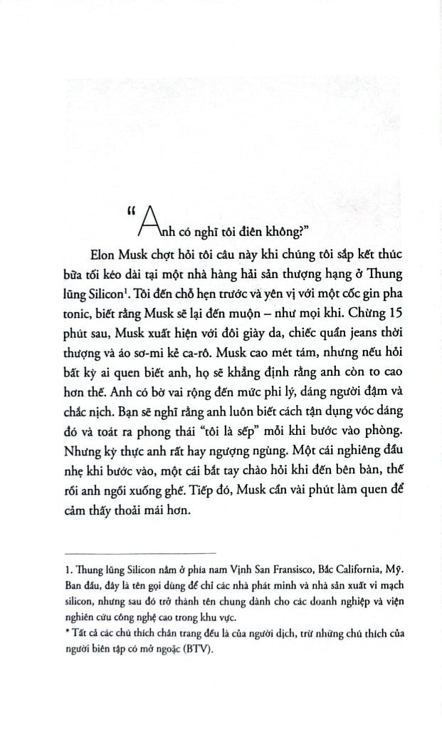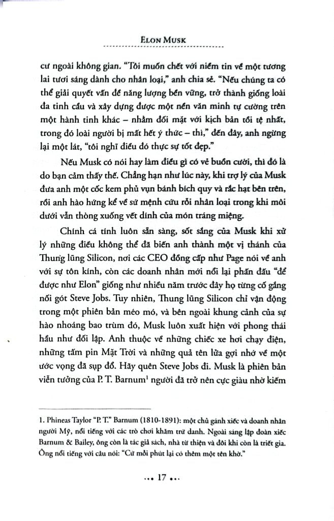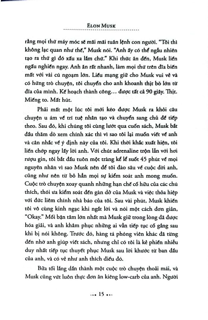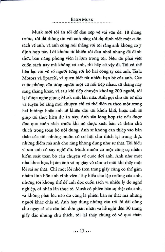 Tiểu sử Elon Musk là cuộc khám phá về cuộc sống và công việc của một biểu tượng thời hiện đại, mang đến những hiểu biết sâu sắc về tâm trí của một người có tầm nhìn được thúc đẩy bởi sự theo đuổi không ngừng đổi mới và tiến bộ. Đây là một cuốn sách hấp dẫn dành cho những ai quan tâm đến sự giao thoa giữa công nghệ, tinh thần kinh doanh và tâm lý con người.