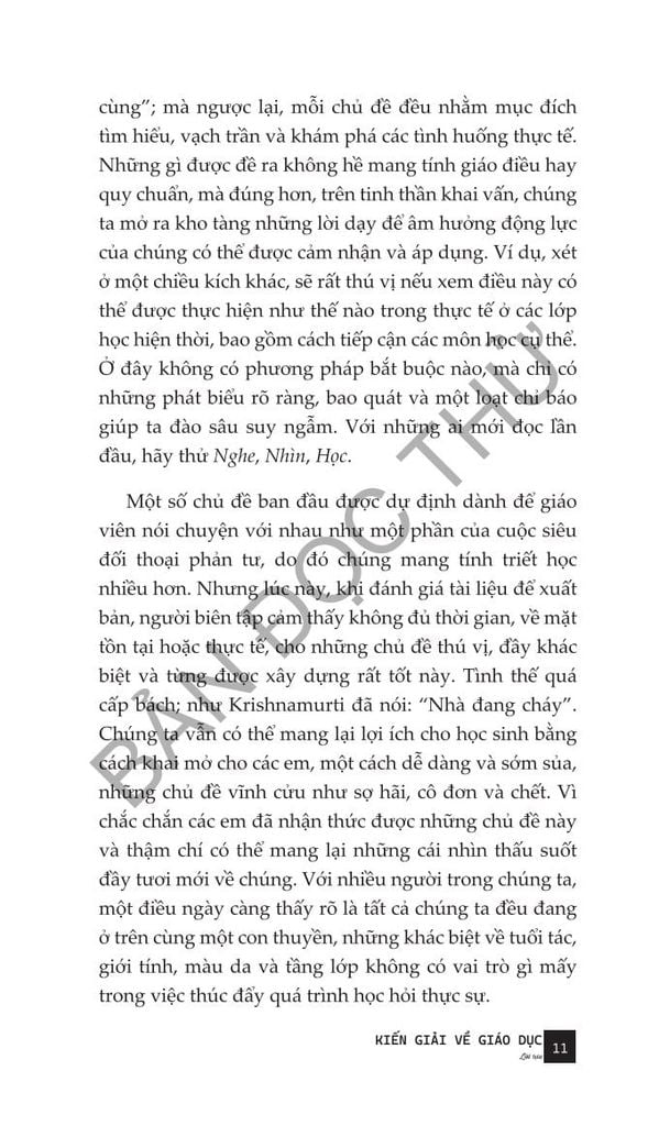 Kiến Giải Về Giáo Dục của J. Krishnamurti là một nghiên cứu chuyên sâu về bản chất của giáo dục, nhấn mạnh rằng việc học tập không chỉ giới hạn trong khuôn khổ kiến thức mà còn liên quan đến sự phát triển toàn diện của con người. Theo Krishnamurti, giáo dục nên giúp cá nhân hiểu rõ về chính mình và mối quan hệ với thế giới, thay vì chỉ tập trung vào việc đáp ứng các tiêu chí xã hội hoặc nghề nghiệp.