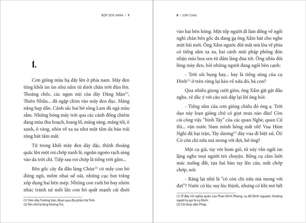 “Búp Sen Xanh” là nơi tiểu thuyết và lịch sử đã gặp nhau và hoạ nên một giai đoạn trong cuộc đời người Cha già của dân tộc Việt Nam. Nơi ấy, có quê nhà xứ Nghệ, có làng Sen, có khung dệt của mẹ, có lời dạy của cha, có những người bạn và những kỷ niệm ấu thơ. Nơi ấy có xứ Huế mà trong cuộc sống nghèo khổ có trăn trở tuổi trẻ, về con người, về vận mệnh dân tộc, có mất mát và đau thương...
