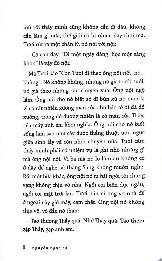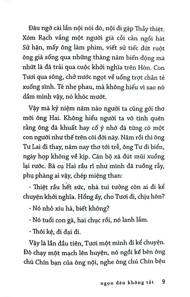 Một số độc giả khi biết cô Tư sắp ra sách, đã hỏi: lần này cô ấy viết có buồn không?... Họ đọc cô - vừa thích nỗi buồn đó vừa muốn kháng cự nó... Nhưng trong tập tản văn này, dường như chính cô kháng cự nỗi buồn của mình bằng lạnh lùng và gai góc khi nhìn vào đời sống người nông dân...