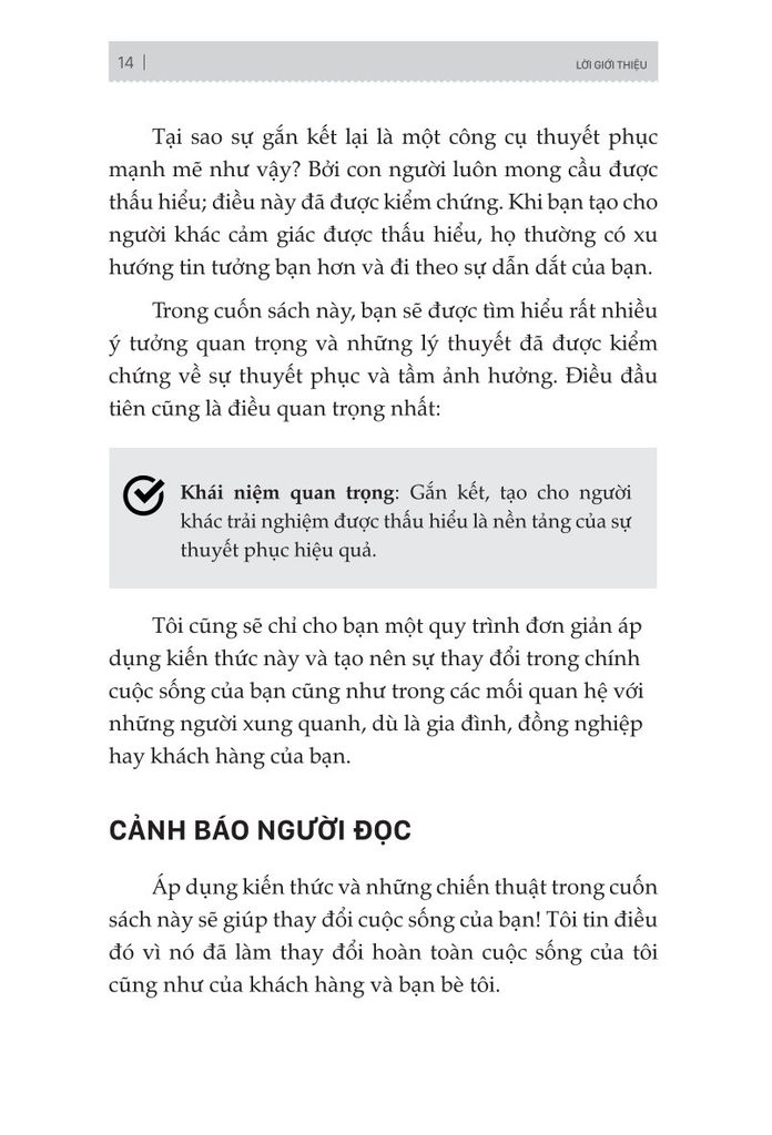 - Hiểu được quá trình tạo sức ảnh hưởng bắt đầu từ thay đổi suy nghĩ, đến cảm nhận, cuối cùng là hành động. Khi người ta nghĩ, họ sẽ có xu hướng cảm nhận và sẽ bắt đầu làm gì đó.