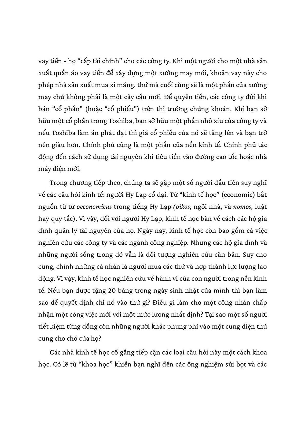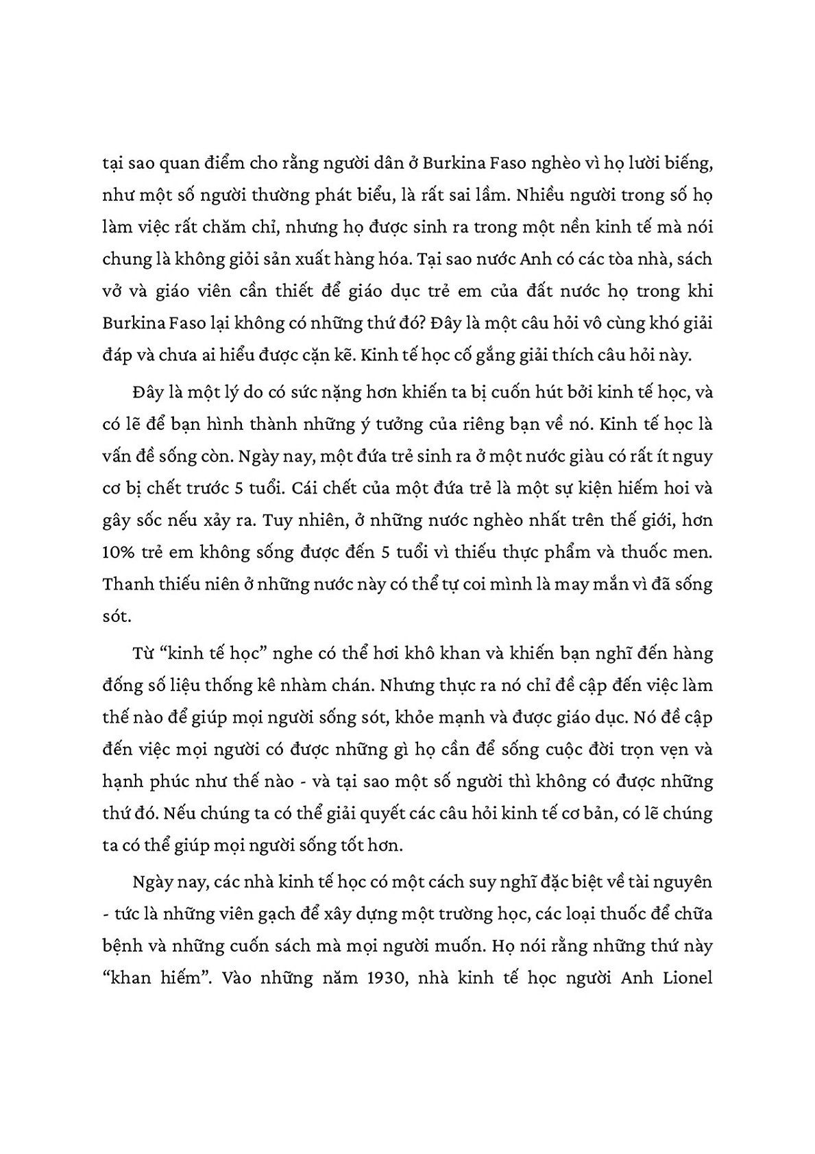 Đây chỉ là một ví dụ trong vô số bài toán kinh tế mà mỗi chúng ta phải giải hằng ngày. Như vậy, kinh tế học hóa ra không chỉ là một lĩnh vực tri thức cao siêu, xa vời dành riêng cho những nhà kinh tế học, chính khách hay doanh nhân, nó hiện diện trong mọi quyết định lớn nhỏ của đời sống. Nhận thức được tầm quan trọng của những hiểu biết kinh tế học căn bản đối với con người trong xã hội đương đại nhiều biến động khó lường, Niall Kishtainy đã trang bị cho độc giả đại chúng một “công cụ” sắc bén, hữu ích mà lại rất dễ dàng tiếp cận.