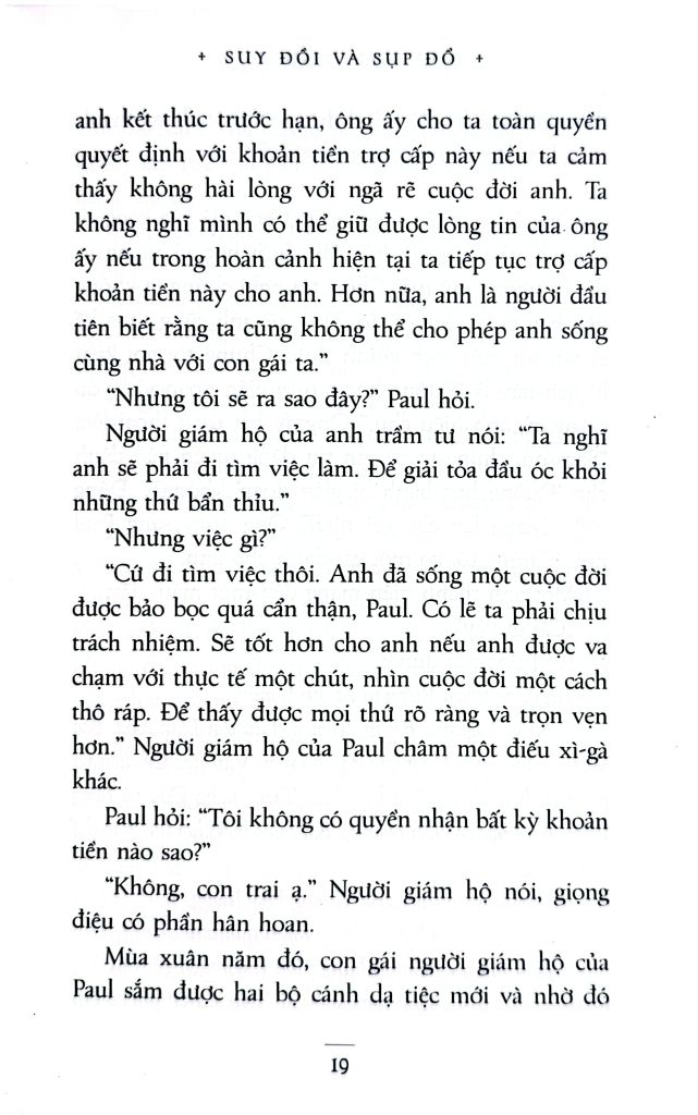 “Suy đồi và sụp đổ” là tiểu thuyết đầu tay và hài hước nhất của Evelyn Waugh, ngay từ khi ra mắt công chúng đã thu hút được đông đảo sự chú ý. Đây là câu chuyện về một chàng trai ngây thơ lạc bước vào thế giới thượng lưu đầy rối ren và suy đồi của những thập niên đầu thế kỷ hai mươi.