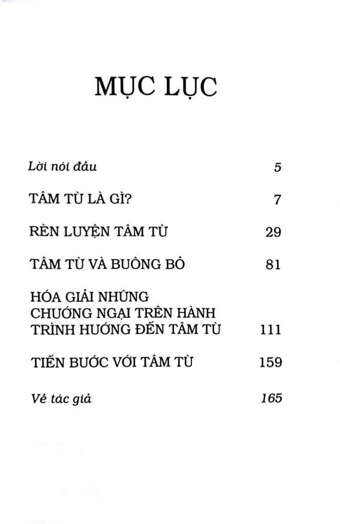 Phật giáo từ xa xưa đã truyền dạy rằng khi ta thương người tất người thương ta. Tâm từ, chủ đề của cuốn sách nhỏ này, là con đường đạo pháp đem chân lý đến cuộc sống.