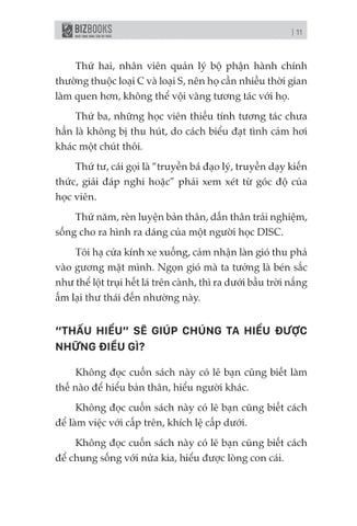Hãy giúp nhân viên, cộng sự học cách liên hệ, giao tiếp, ảnh hưởng và thúc đẩy người khác một cách hiệu quả để tạo ra các mối quan hệ thành công với cấp dưới, khách hàng, khách hàng tiềm năng, đồng nghiệp, quản lý và bạn bè thông qua cuốn sách “Ứng dụng DISC để hiểu từng người xung quanh bạn trong công việc”