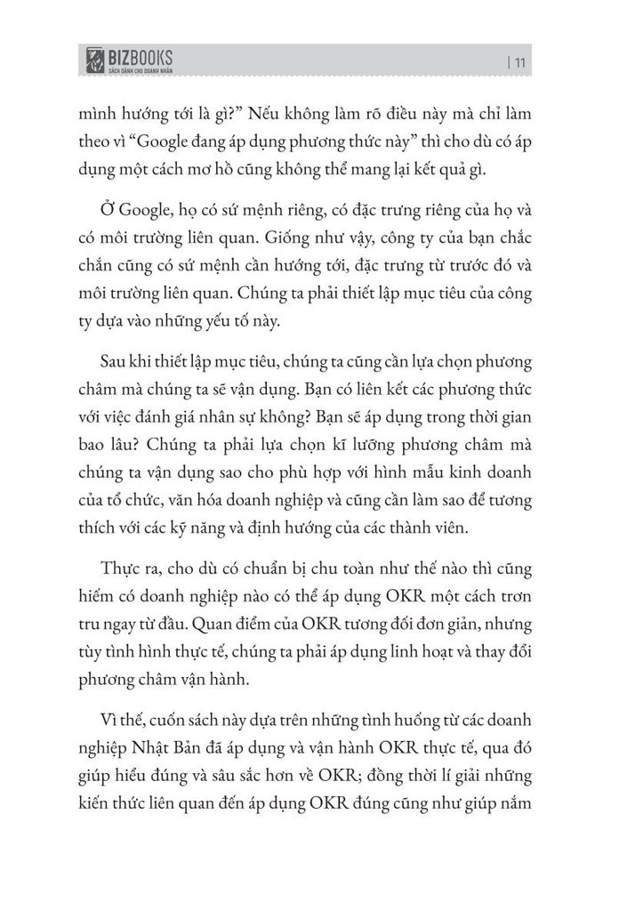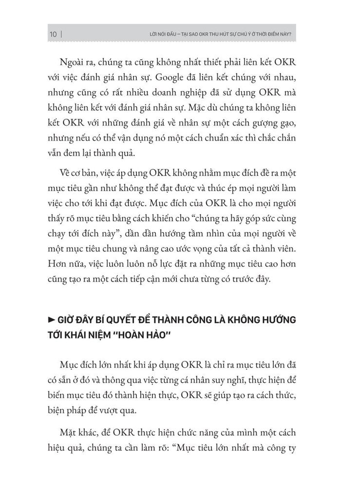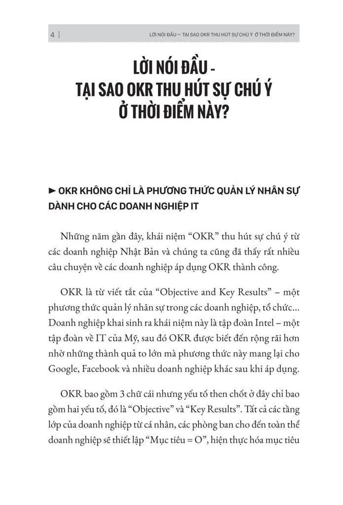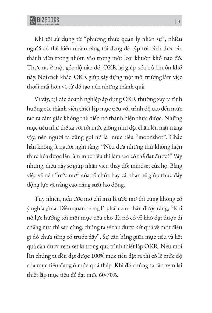 Lãnh đạo cần OKR để giải phóng bản thân và sở hữu cho mình phương pháp quản trị hiệu quả, đạt hiệu suất cao mà không cần áp đặt nhiều. OKRs (Objectives and Key Results - Quản trị theo Mục tiêu và Kết quả Then chốt). Đây là phương pháp đánh giá về sự tiến bộ và nỗ lực đạt được mục tiêu. OKR được biết bí quyết thành công, biến Google thành một “đế chế” hùng mạnh như hiện tại. Cuốn sách OKR giúp các nhà quản lý hiểu rõ về OKR, vì sao nó lại áp dụng thành công ở những tập đoàn lớn và phương pháp áp dụng OKR hiệu quả.