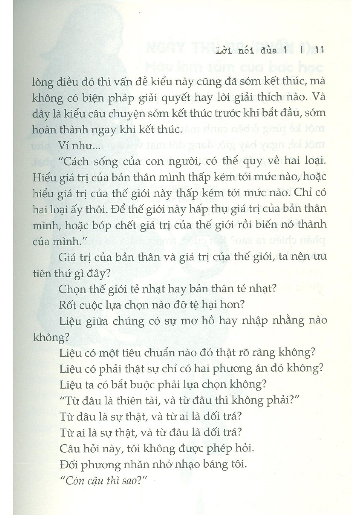 Có lẽ trên đời không gì vô nghĩa bằng việc tư duy logic. Bởi vốn dĩ logic là do con người tạo ra, mà thế giới này lại vượt xa tầm kiểm soát của loài người.