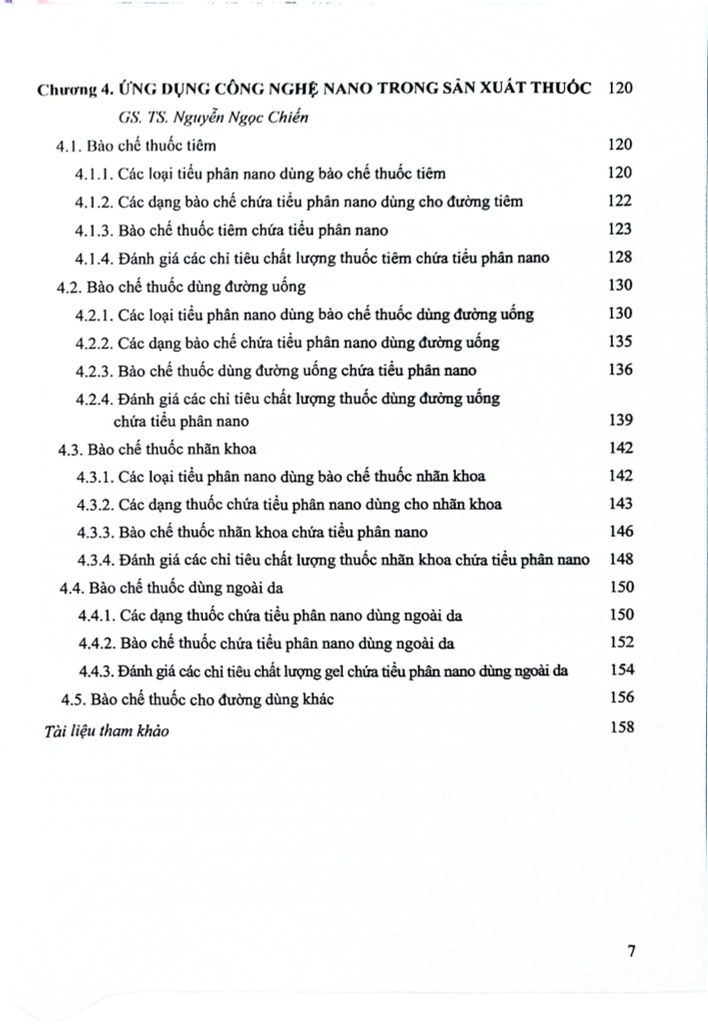 Ngoài những kiến thức cơ bản về công nghệ nano, tài liệu “Công nghệ nano và ứng dụng trong sản xuất thuốc” sẽ giới thiệu thêm cho người học về những thành phần cơ bản của một tiểu phân nano, tóm tắt các phương pháp bào chế các tiểu phân này. Đồng thời, tài liệu này sẽ cập nhật các phương pháp đánh giá đặc tính lý hóa cũng như các phương pháp và mô hình đánh giá tác dụng sinh học in vitro và in vivo của tiểu phân nano. Phần cuối của tài liệu sẽ giới thiệu về các ứng dụng của các tiểu phân nano vào các dạng thuốc hiện đang được nghiên cứu và áp dụng thực tế.