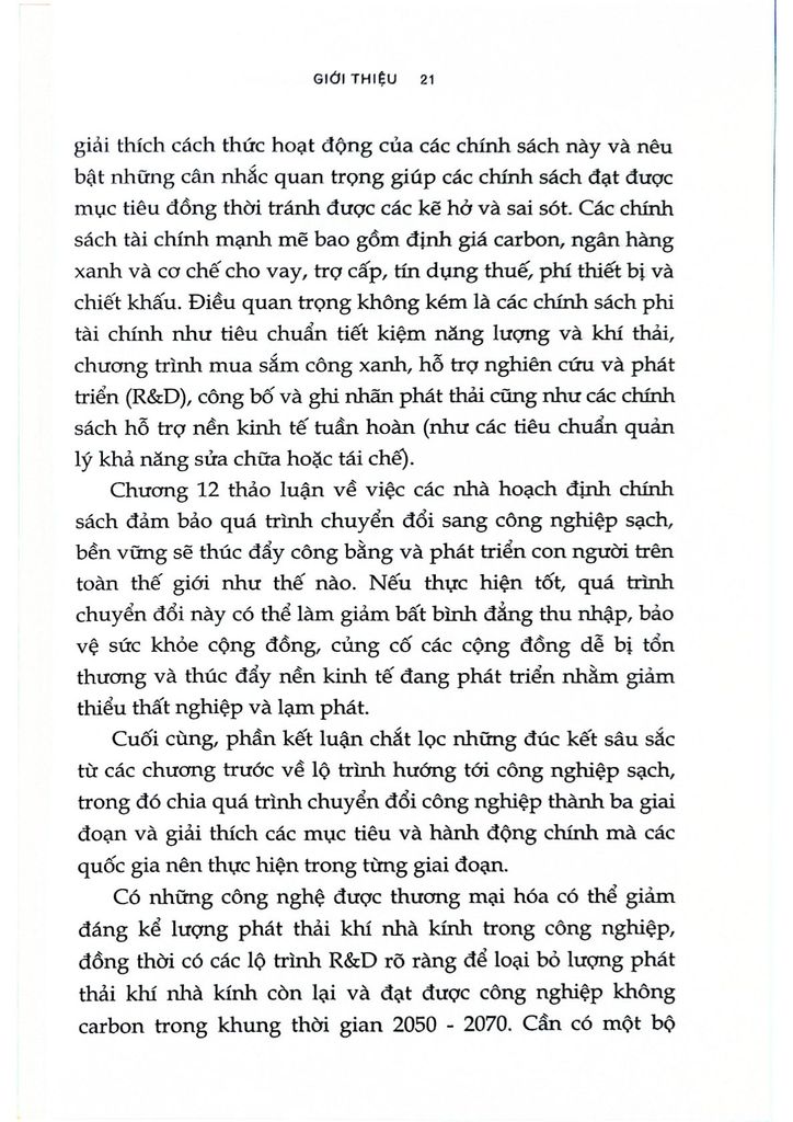 Tiếp cận toàn diện và sâu sắc, cuốn sách không chỉ phân tích các xu hướng công nghệ tiên tiến như năng lượng tái tạo, phương pháp sản xuất sạch, mà còn đưa ra các giải pháp chính sách cần thiết để thúc đẩy sự chuyển đổi toàn cầu. Từ việc sử dụng trí tuệ nhân tạo, tự động hóa, cho đến những sáng kiến mang tính đột phá trong quản lý nguồn lực, tác giả mang đến một góc nhìn đầy hứa hẹn về một thế giới không carbon