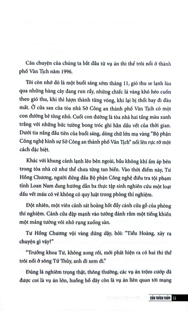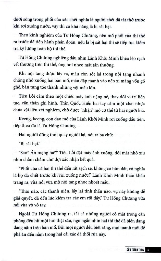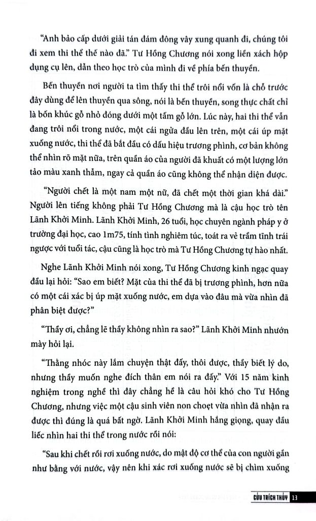 Đây là lời tựa do đích thân Pháp y Tần Minh giới thiệu về “Cục điều tra thi thể - Truy tìm bằng chứng thép”. Cuốn sách được viết bởi Cửu Trích Thủy - kỹ thuật viên giám định dấu vết thuộc Phòng Công nghệ Hình sự tỉnh An Huy (Trung Quốc), bao gồm 5 vụ án dựa trên sự kiện có thật, đi kèm với sơ đồ hiện trường chi tiết.