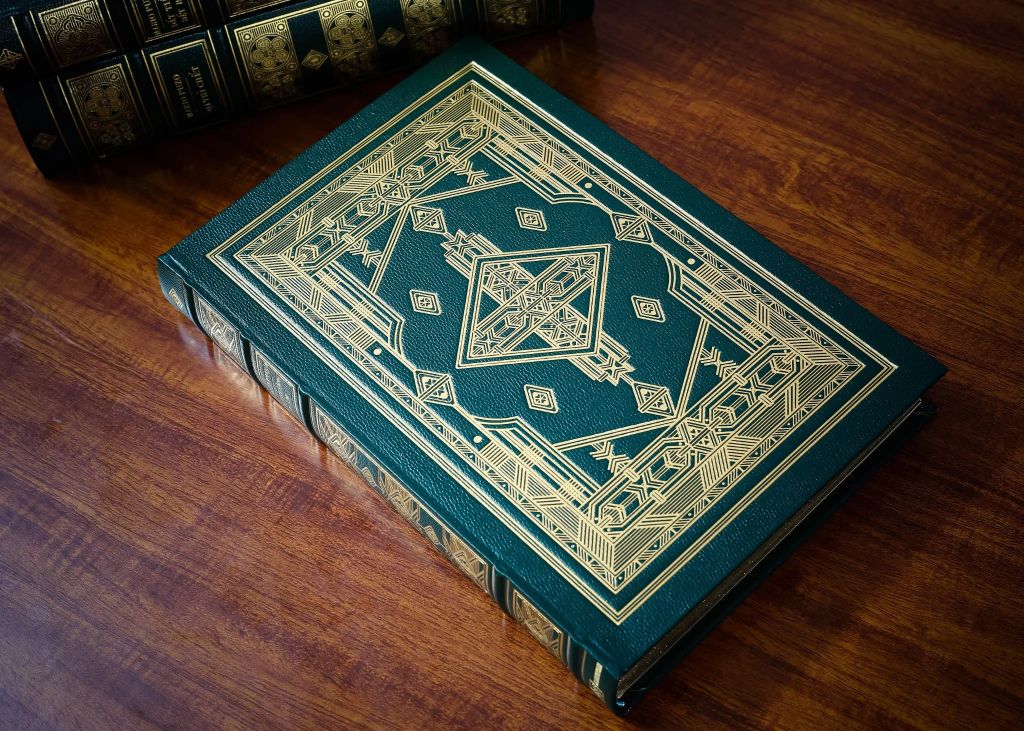 2. Bìa sách bọc bằng da nhân tạo (bonded leather) màu xanh rêu đậm, nhập khẩu trực tiếp từ nhà sản xuất tại Mỹ, có gốc da thật, với các sợi da được bảo vệ bằng lớp sơn phủ gốc nước, ép vân nổi sắc nét, cho hình thức đẹp và bền với thời gian. Đây là dòng da được sản xuất trong điều kiện đảm bảo các yếu tố bảo vệ môi trường, và được sử dụng nhiều cho việc bọc bìa sách Kinh Thánh cùng nhiều loại sản phẩm khác. Ngoài ra, bìa sách được ép nhũ vàng họa tiết đồng nhất cho 2 mặt.