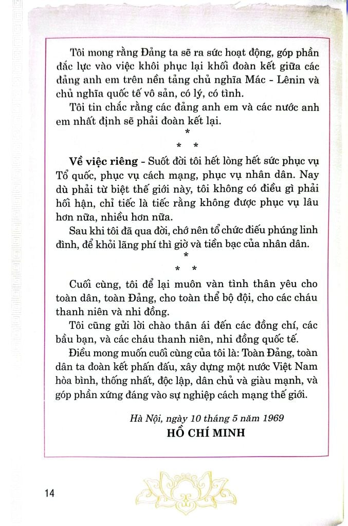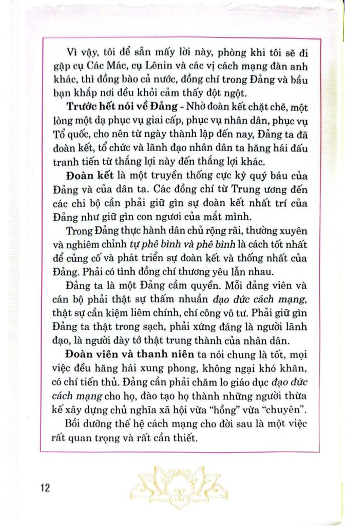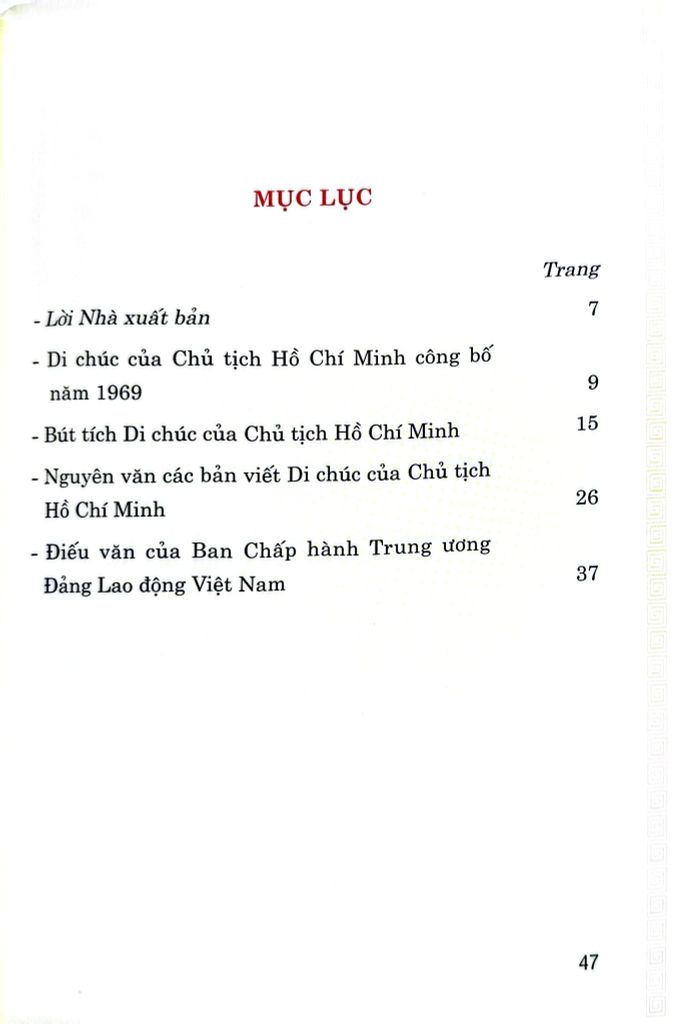 ốn sách nêu rõ toàn văn bản Di chúc thiêng liêng của Chủ tịch Hồ Chí Minh, nhằm phục vụ nhu cầu của độc giả nghiên cứu và tiếp tục học tập và làm theo tấm gương đạo đức Hồ Chí Minh.