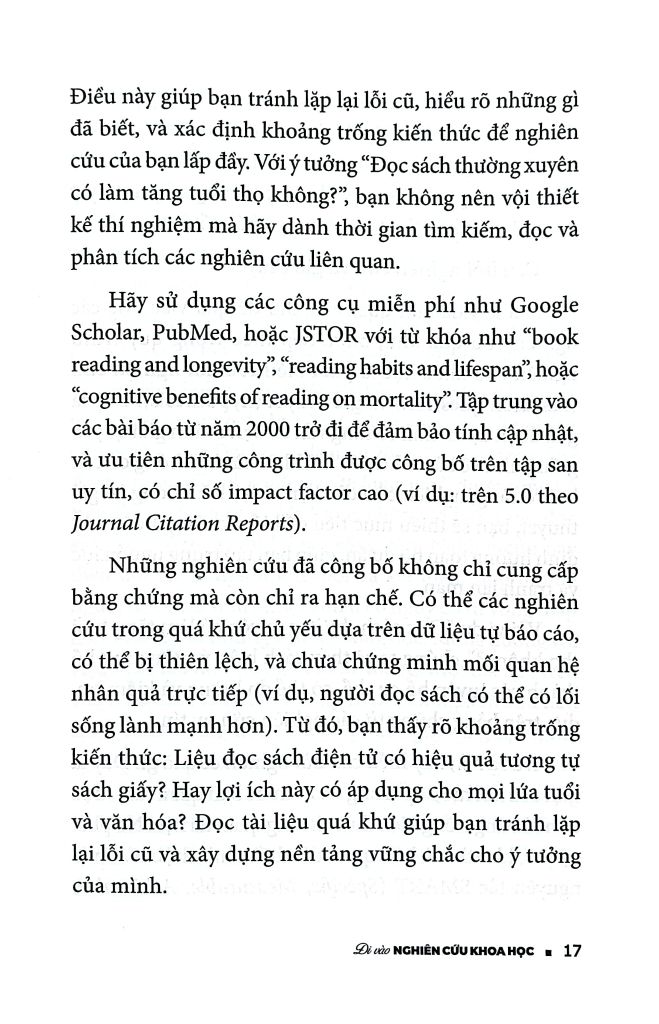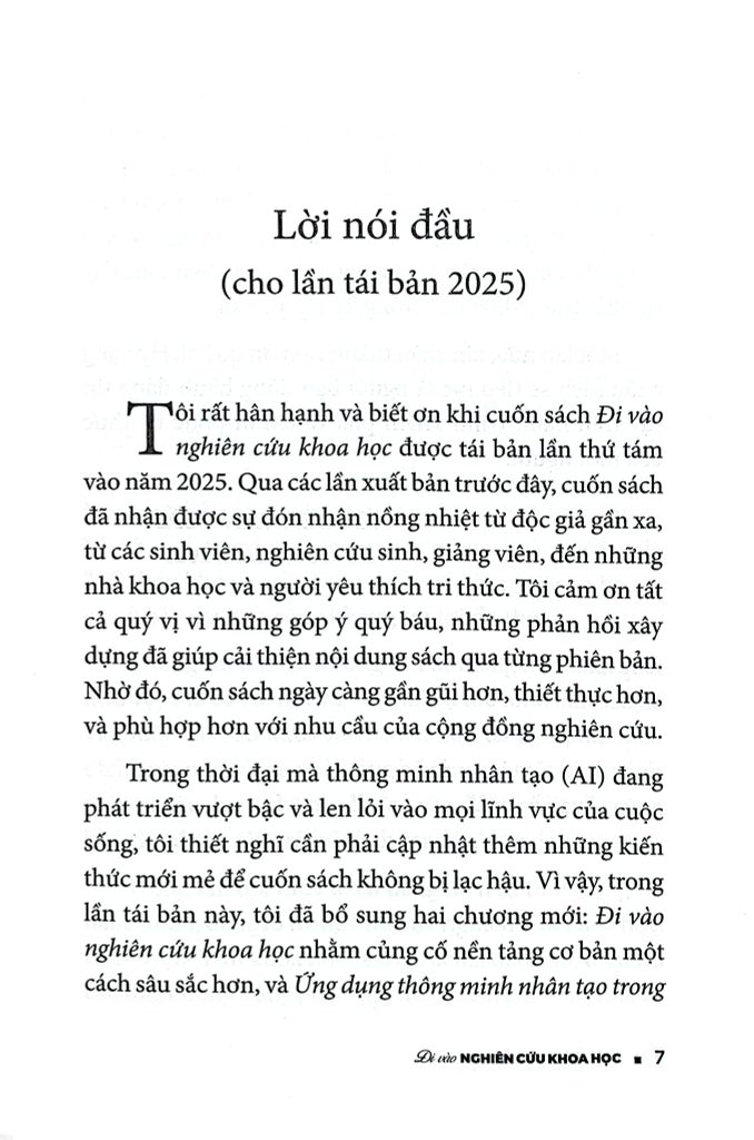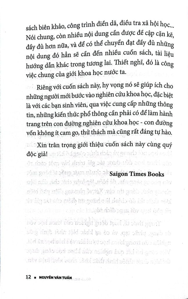 Riêng với cuốn sách này, hy vọng nó sẽ giúp ích cho những người mới bước vào nghiên cứu khoa học, đặc biệt là với các bạn sinh viên, qua việc cung cấp những thông tin, những kiến thức phổ thông cần phải có để làm hành trang trên con đường nghiên cứu khoa học - con đường vốn không ít cam go, thử thách mà cũng rất đáng tự hào.