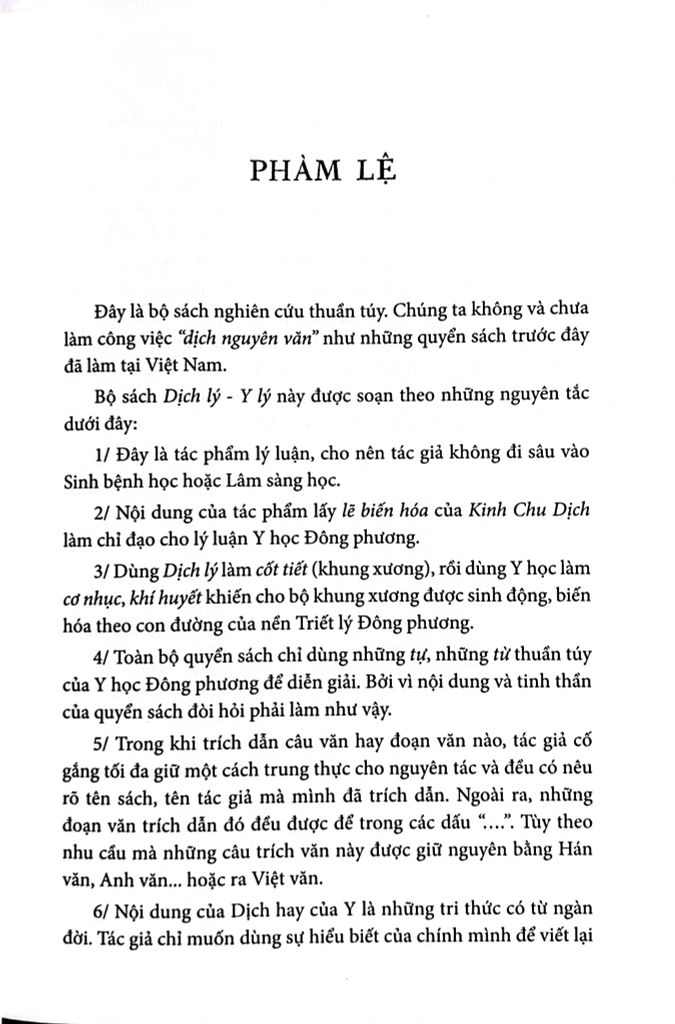 Tiến tới rõ hơn, Nội kinh đã chứng minh bằng một công trình đồ sộ về sinh lý, y lý, bệnh lý… rằng con người được nhìn toàn diện và phải được nhìn toàn diện. Phải chăng vì vậy mà nền Y học Đông phương không lấy giải phẫu làm sở trường của mình? Và phải chăng cũng vì vậy mà nền Y học Đông phương lấy dưỡng sinh, lấy trị vị bệnh làm sở trường của mình? Trong toàn bộ công trình biên khảo và dịch thuật của tôi về Y học, về Y đạo Đông phương, cũng như trực tiếp qua quyển Dịch lý - Y lý này, tôi mong muốn một cách thật khiêm nhượng cùng Quý độc giả tìm một đáp số cho một số vấn đề đặt ra trên, đồng thời cố gắng tìm hiểu rõ hơn nền tảng của Y lý Đông phương.