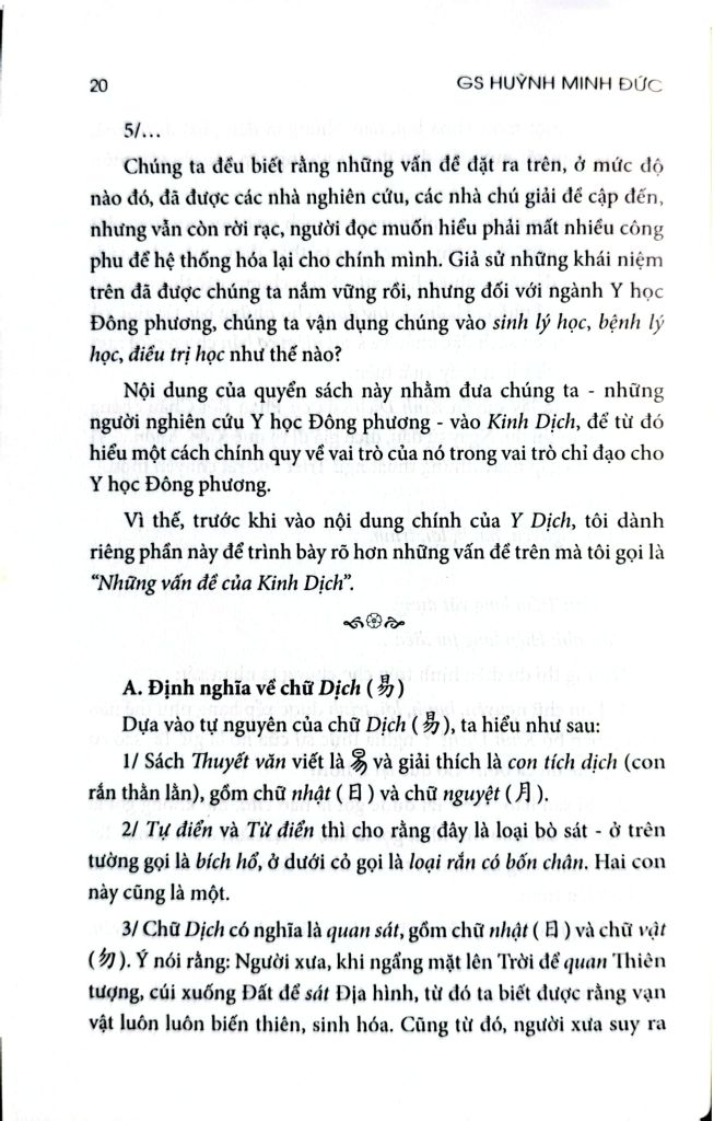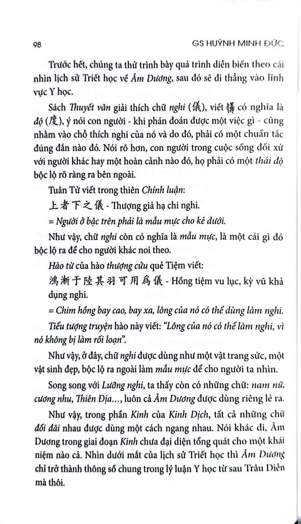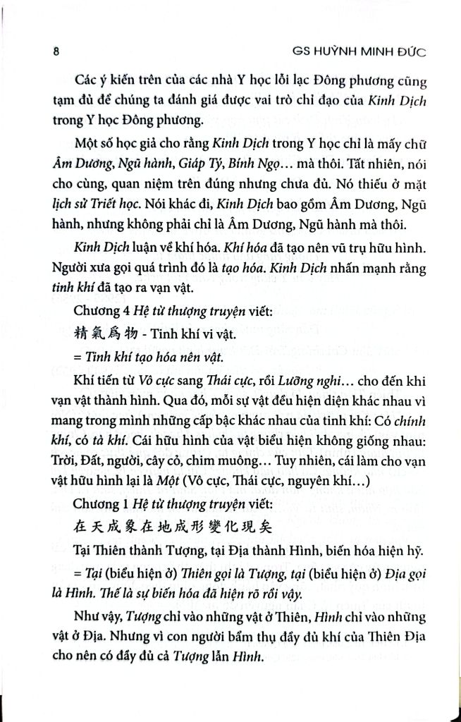 Một số học giả cho rằng Kinh Dịch trong Y học chỉ là mấy chữ Âm Dương, Ngũ hành, Giáp Tý, Bính Ngọ… mà thôi. Tất nhiên, nói cho cùng, quan niệm trên đúng nhưng chưa đủ. Nó thiếu ở mặt lịch sử Triết học. Nói khác đi, Kinh Dịch bao gồm Âm Dương, Ngũ hành, nhưng không phải chỉ là Âm Dương, Ngũ hành mà thôi.