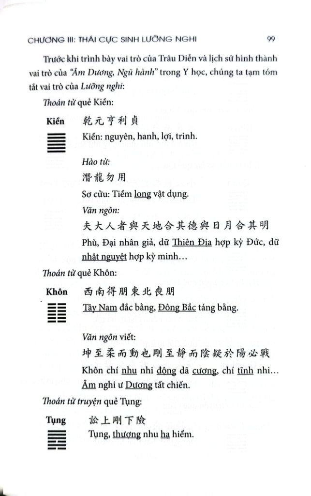 “Học Kinh Dịch đã, rồi sau mới có thể nói đến Y học được. (Nói như vậy) không phải bảo chúng ta chỉ học ở hoạch, học ở hào. Chúng ta thử quan (nhìn) Tâm của chúng ta, (trong đó) quả thực có hoạch (vạch) nào không? Có hào nào không? Chỉ là nguyên lý, nguyên khí hồn hợp nhau không gián đoạn mà thôi. Sinh ra Thiên, sinh ra Địa, sinh ra Nhân, sinh ra Vật… - tất cả đều do sự tạo hóa này làm chủ mà ra”.