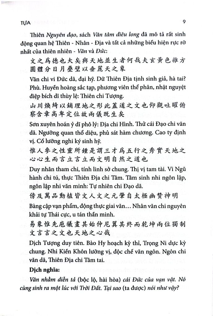 Thiên Nguyên đạo, sách Văn tâm điêu long đã mô tả rất sinh động quan hệ Thiên - Nhân - Địa và tất cả những biểu hiện rực rỡ nhất của thiên nhiên - Văn và Đức:
