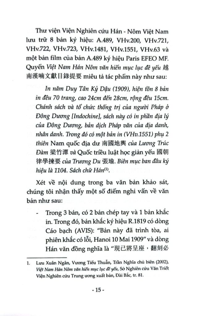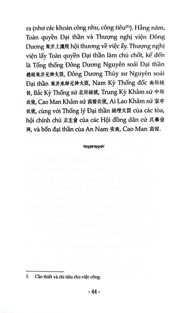 Quyển sách là một minh chứng cho dấu vết khai thác thuộc địa theo kiểu nửa bản địa hóa, nửa thực dân hóa. Người Pháp xác lập cơ cấu quản lý dựa trên nền tảng cơ chế tổ chức văn hóa - xã hội truyền thống Việt Nam, đối với từng vùng, bằng tư cách của mình là thuộc địa hay bảo hộ, người Pháp uyển chuyển đặt ách cai trị lên mỗi khu vực, hệ thống quản lý làng, xã truyền thống vẫn được giữ để làm công cụ khai thác cai trị cho Pháp.
