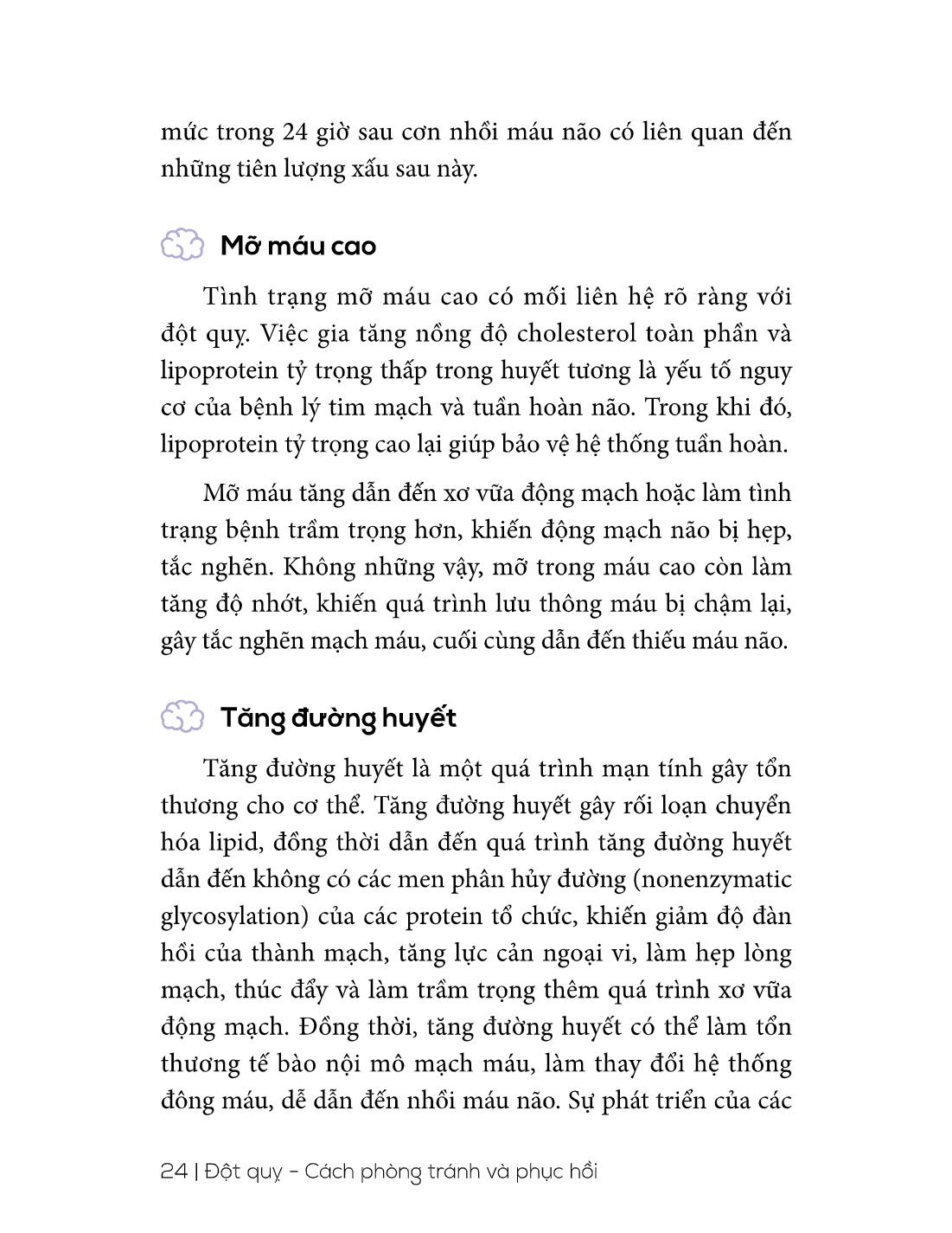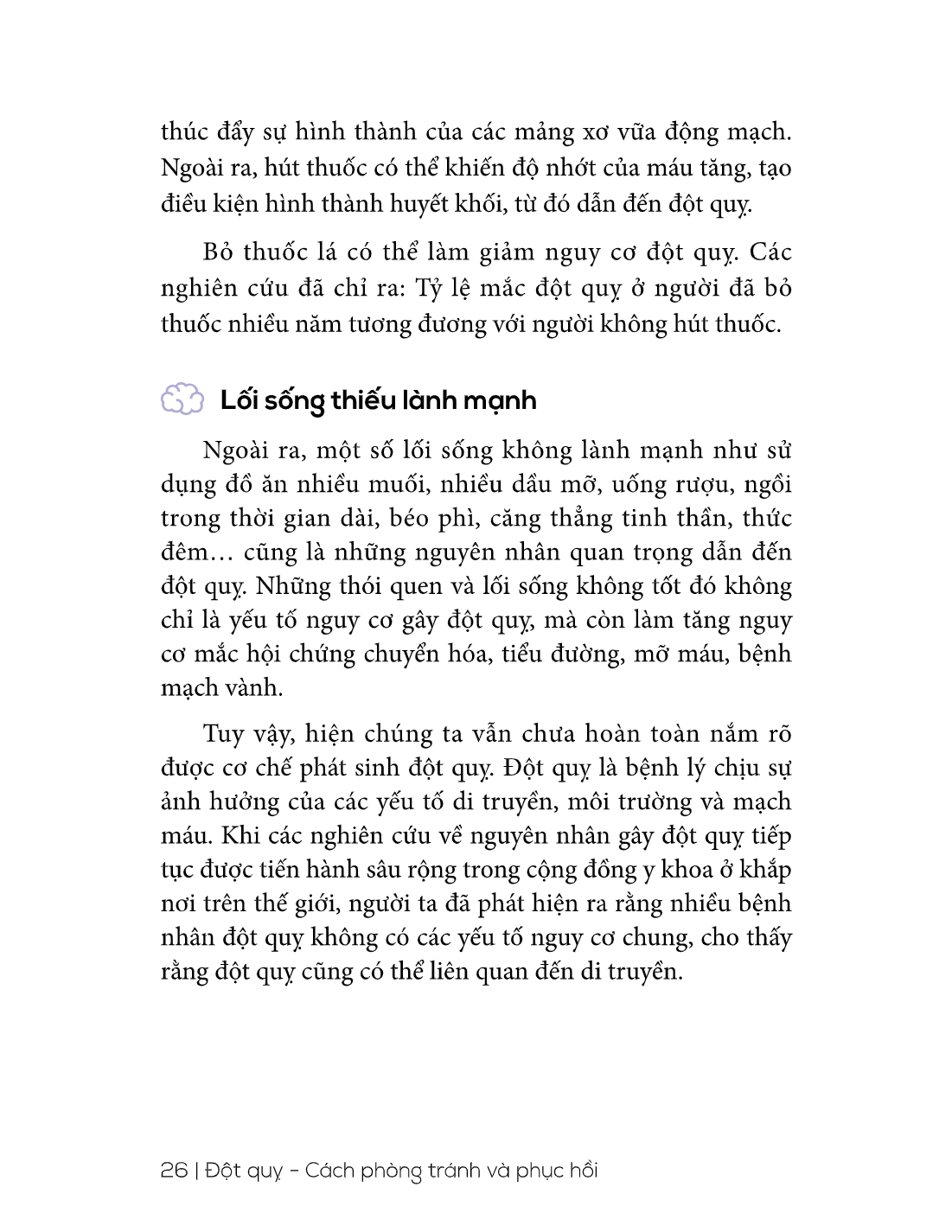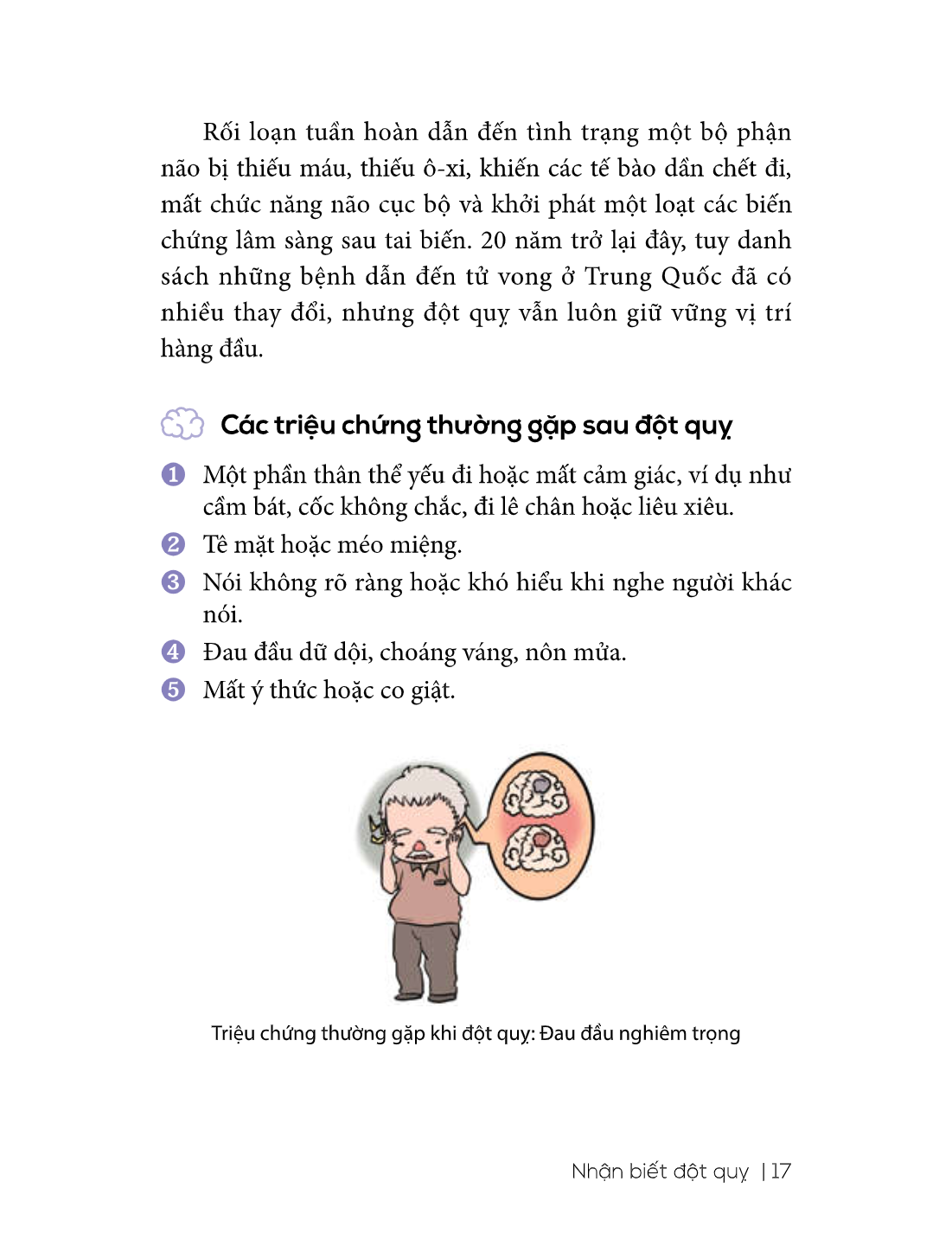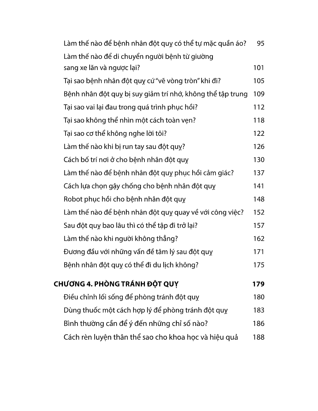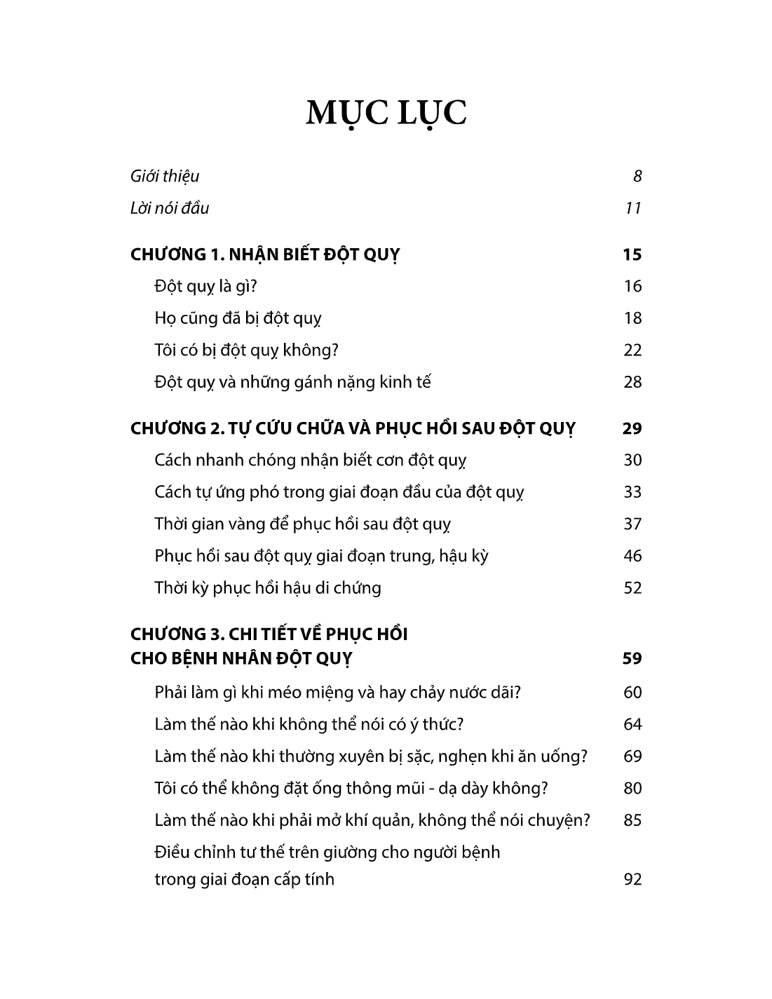 Cuốn sách Đột quỵ: Cách phòng tránh và phục hồi bao gồm 04 chương với nội dung không quá dài nhưng sẽ giúp độc giả nắm được những kiến thức và kỹ năng liên quan từ lúc nhận biết đột quỵ đến tự cứu chữa, phục hồi chức năng sau đột quỵ và cách phòng chống đột quỵ cho bản thân, gia đình. Trong cuốn sách, các từ chuyên ngành y học sẽ được diễn đạt một cách đơn giản, dễ hiểu, kết hợp với hình minh họa trực quan, sinh động để phân tích các phần việc cụ thể như điều chỉnh tư thế nằm, giúp người bệnh di chuyển từ giường xuống xe lăn, cách thay quần áo...giúp người đọc dễ dàng hình dung và thực hiện.
