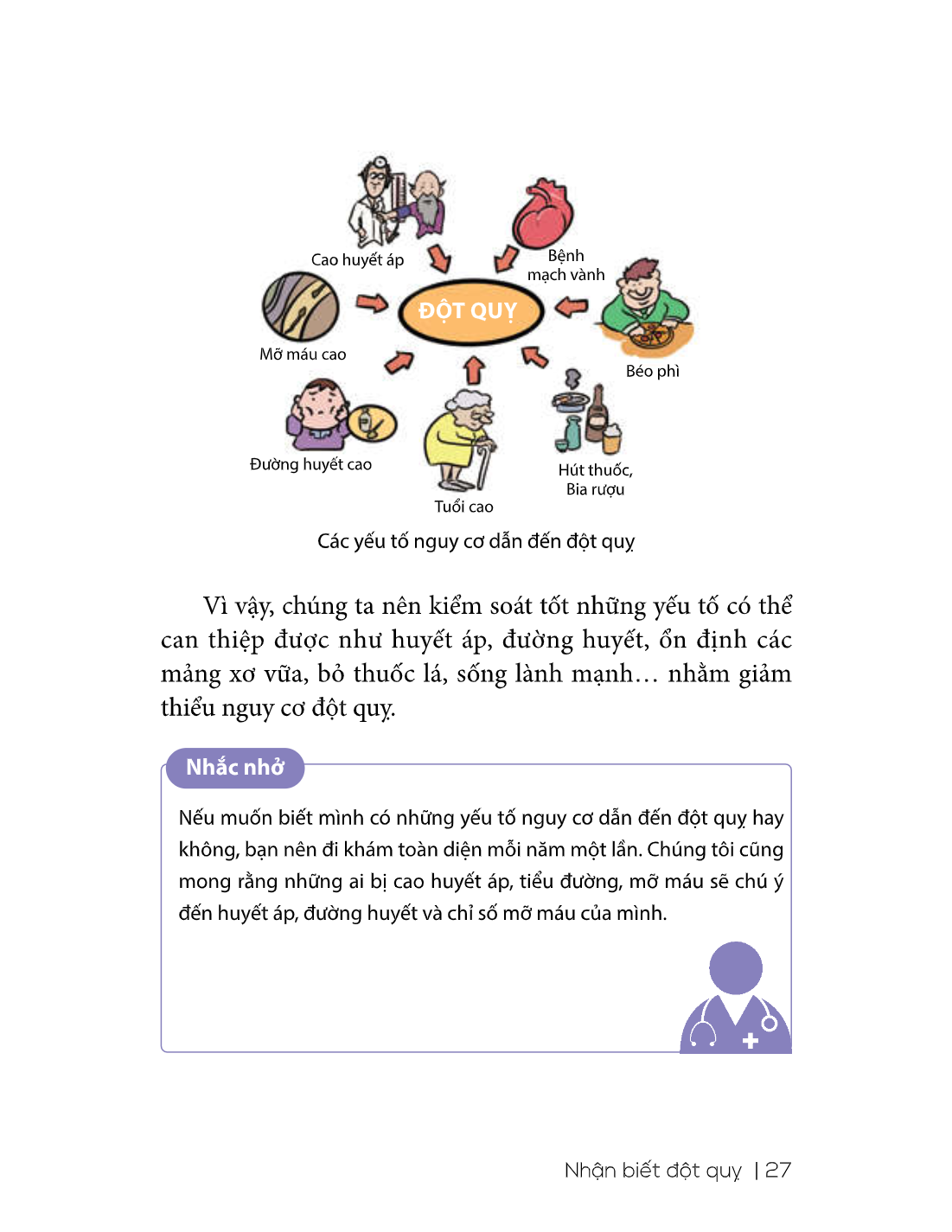 Nhắc nhở: Nếu muốn biết mình có những yếu tố nguy cơ dẫn đến đột quỵ hay không, bạn nên đi khám toàn diện mỗi năm một lần. Chúng tôi cũng mong rằng những ai bị cao huyết áp, tiểu đường, mỡ máu sẽ chú ý đến huyết áp, đường huyết và chỉ số mỡ máu của mình